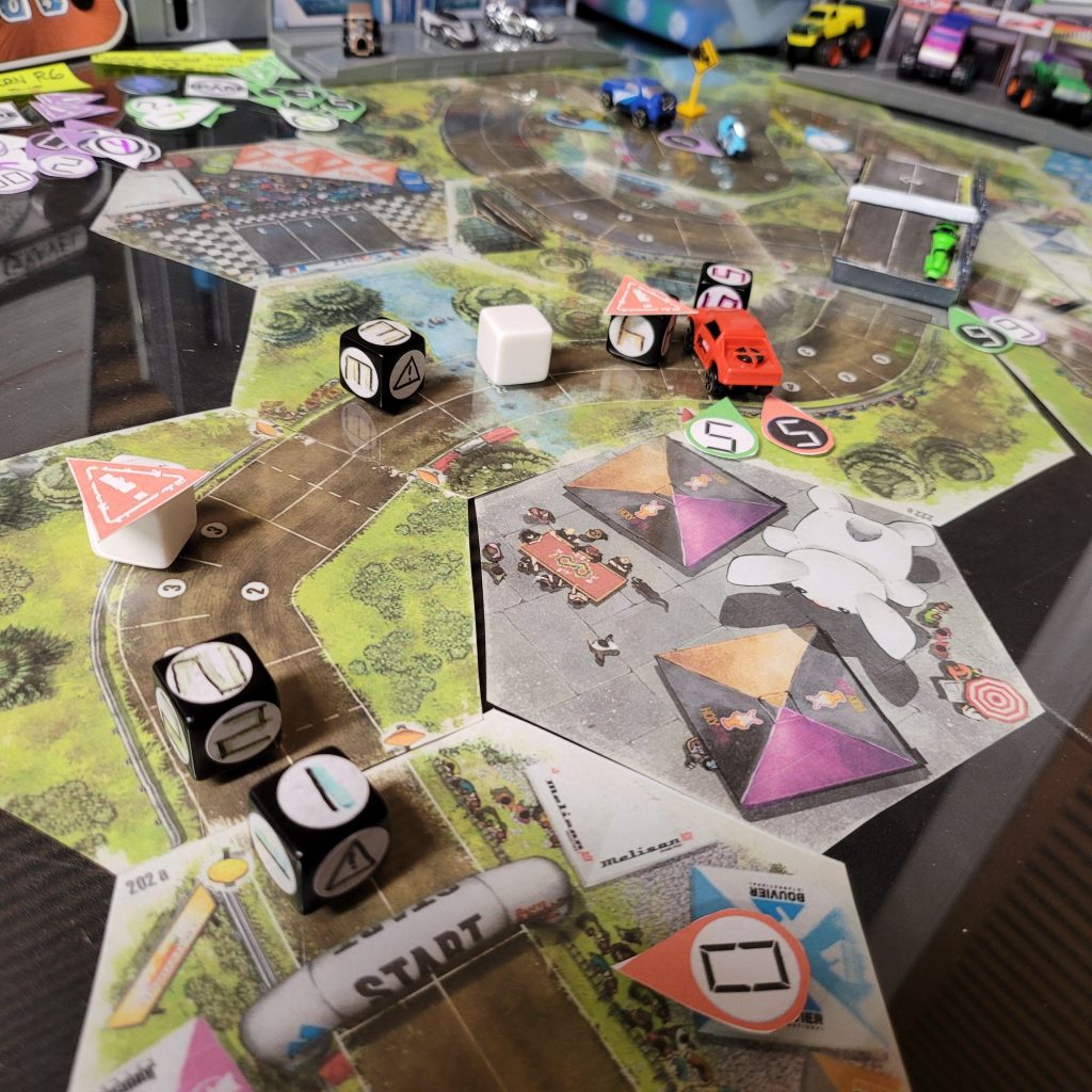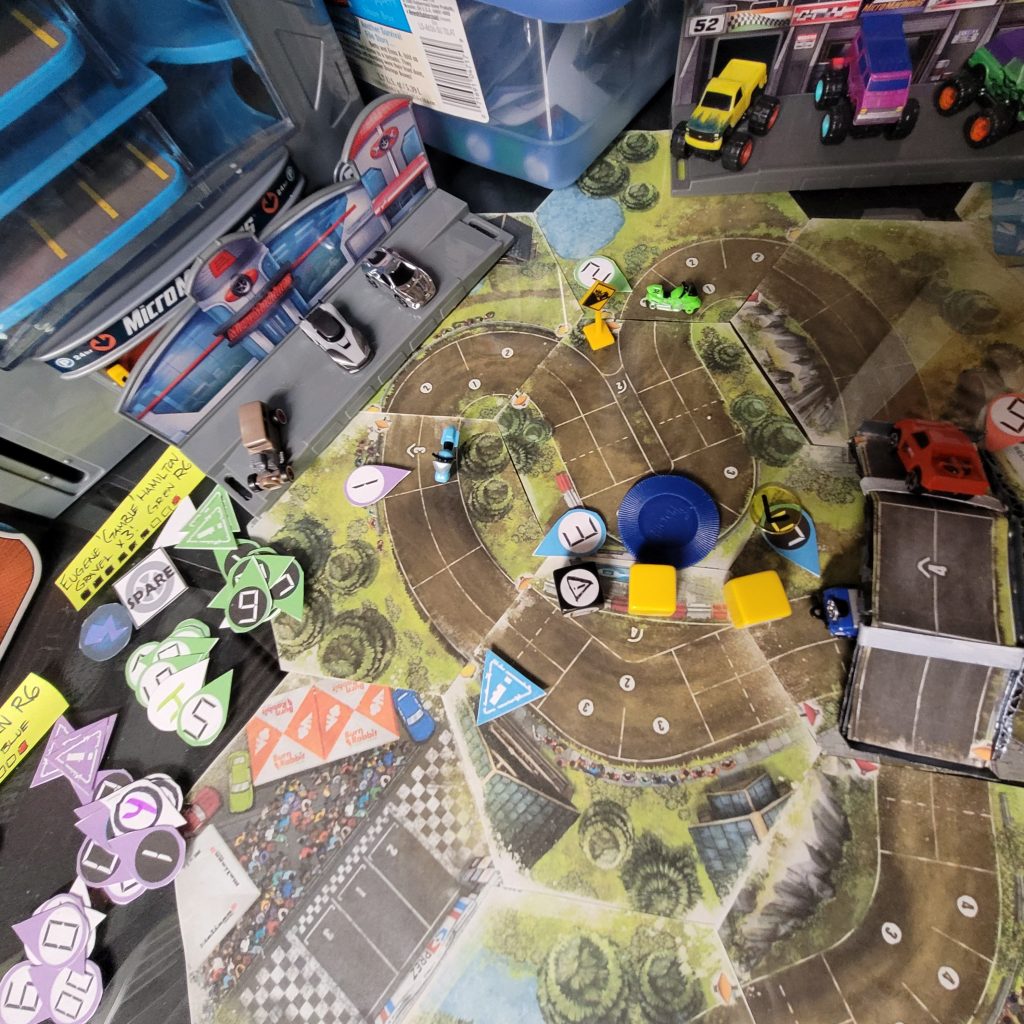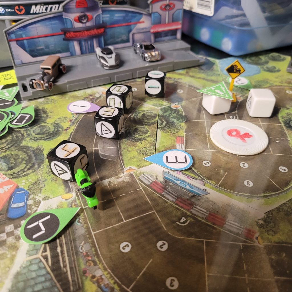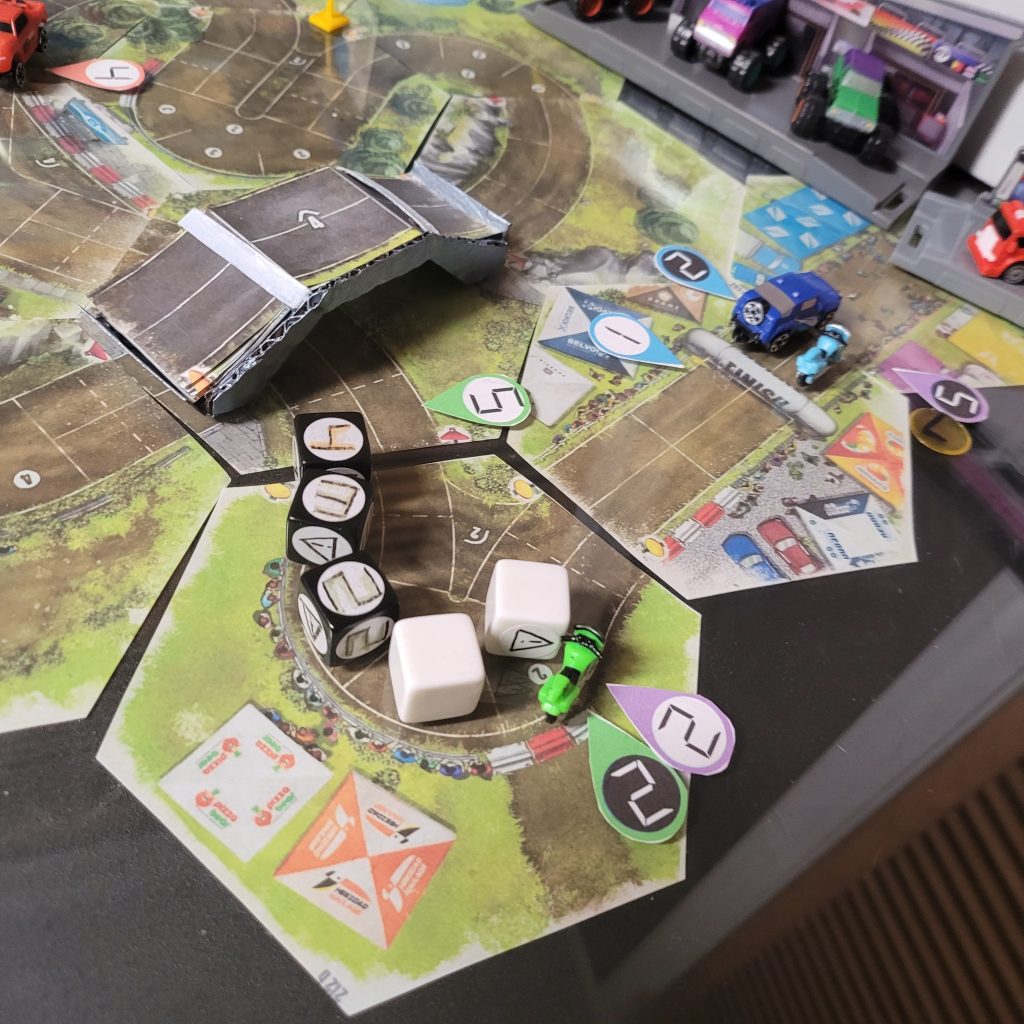 • HEATED WHEELS: All racers go FLAT OUT each turn but gain no Focus. Course trajectory is laid out after the roll is made, and caution results are still observed.