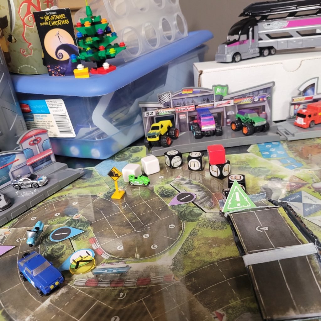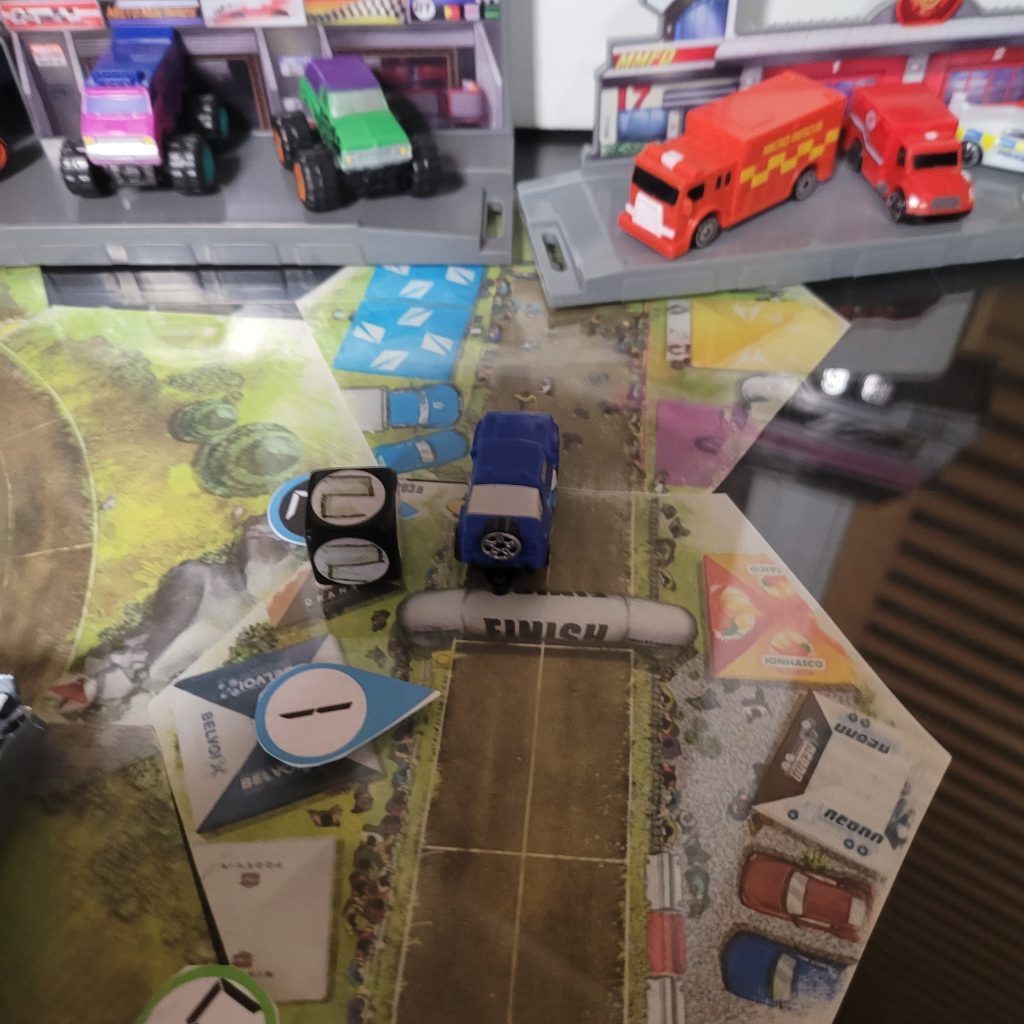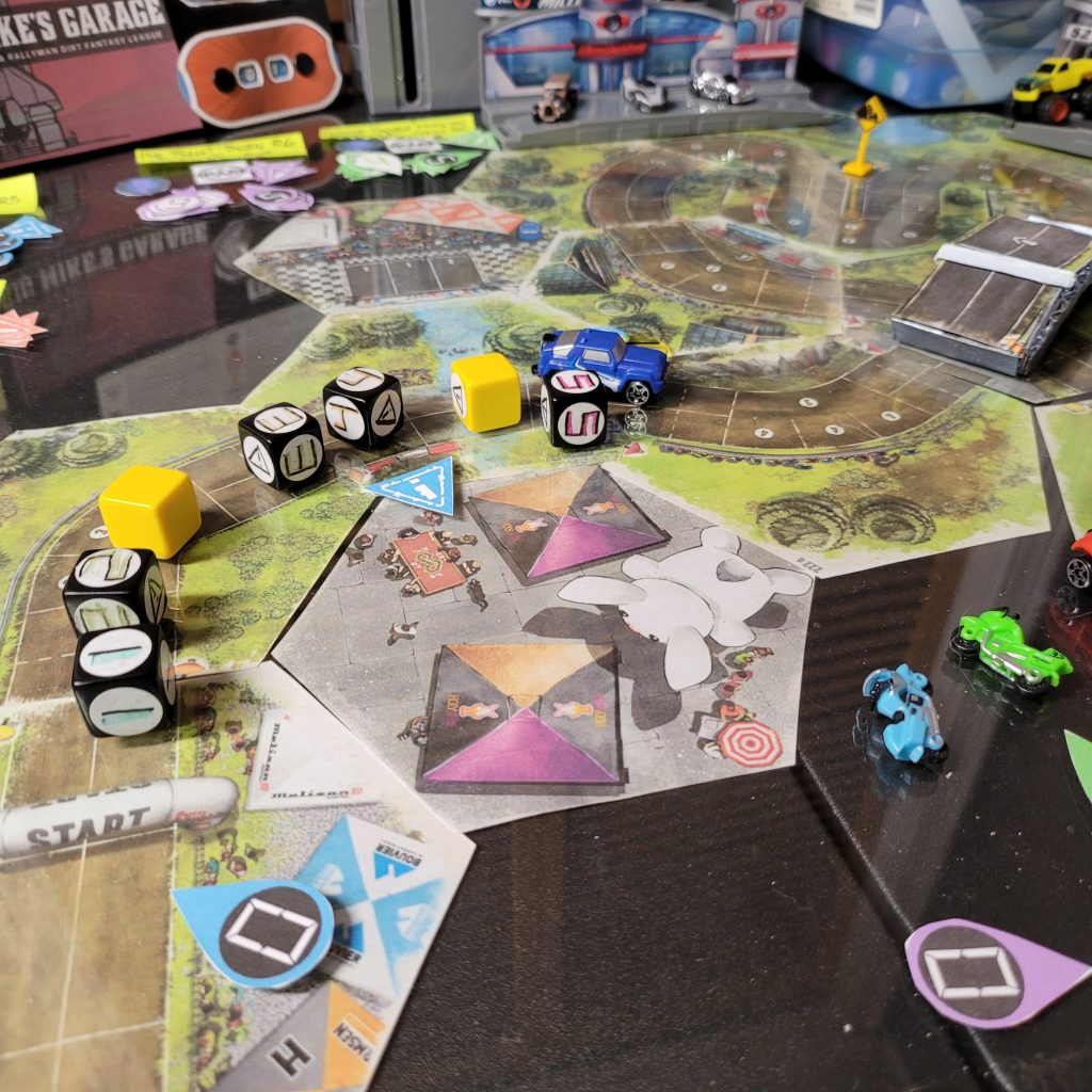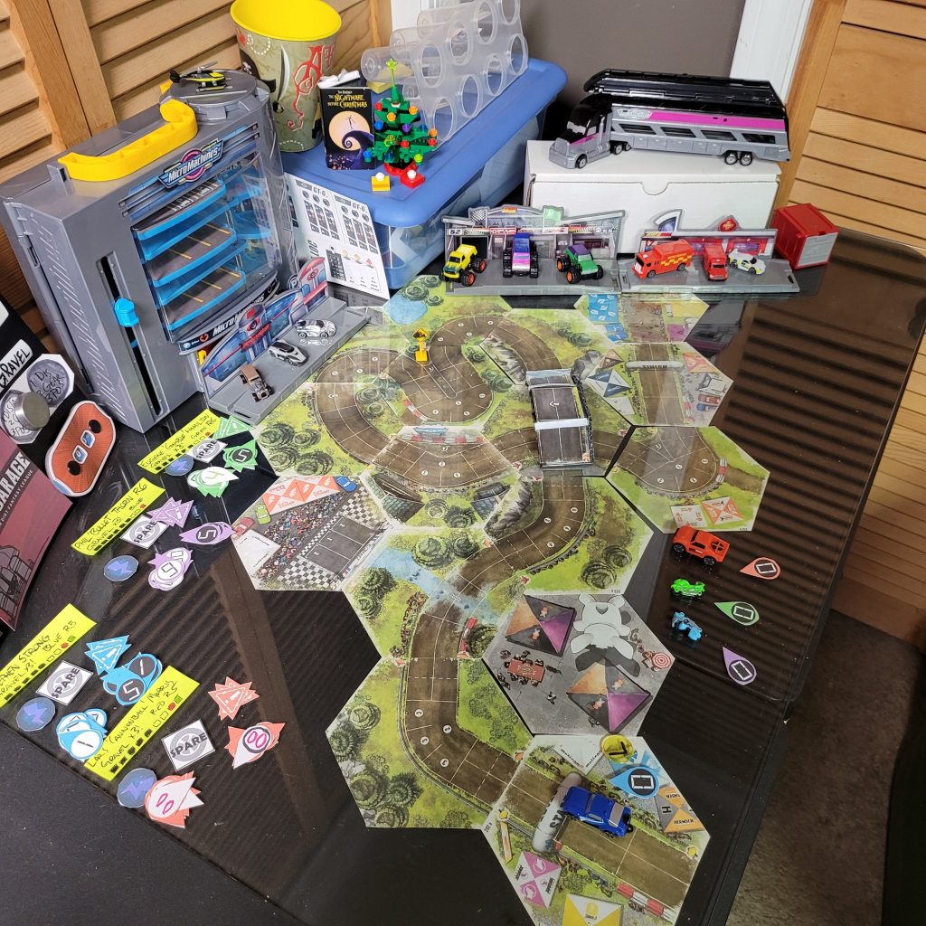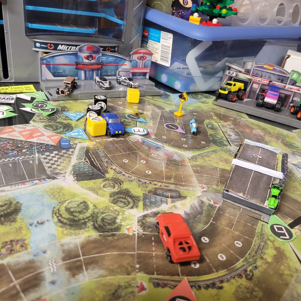 • HEATED WHEELS: All racers go FLAT OUT each turn but gain no Focus. Course trajectory is laid out after the roll is made, and caution results are still observed.