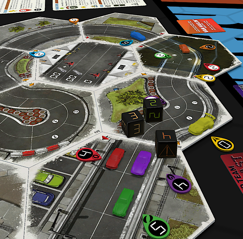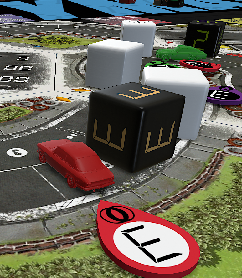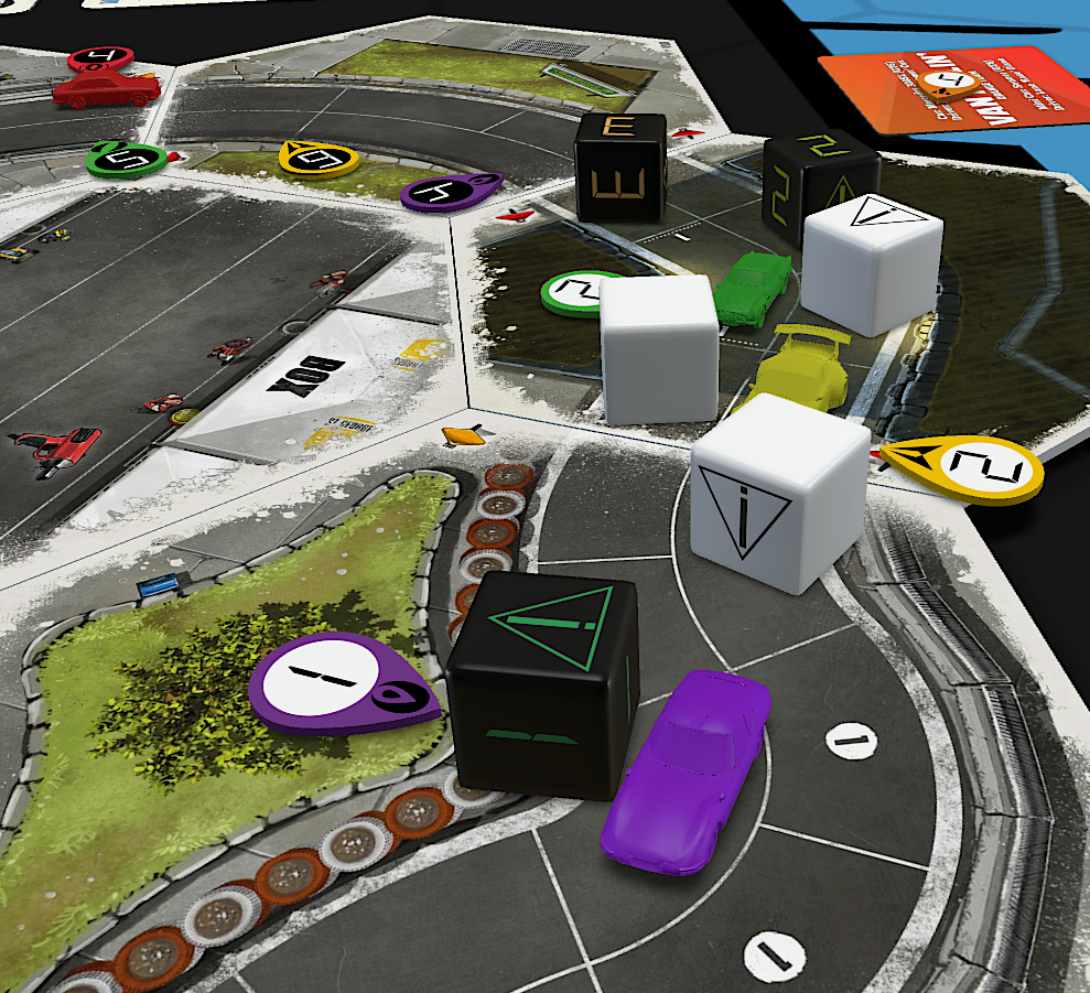 • HEATED WHEELS: All racers go FLAT OUT each turn but gain no Focus. Course trajectory is laid out after the roll is made, and caution results are still observed.