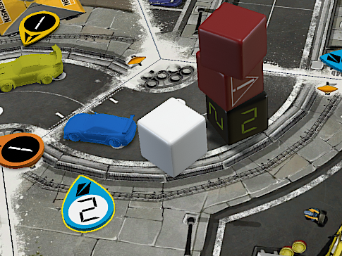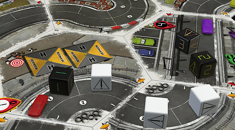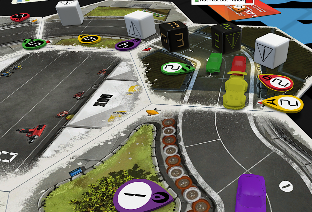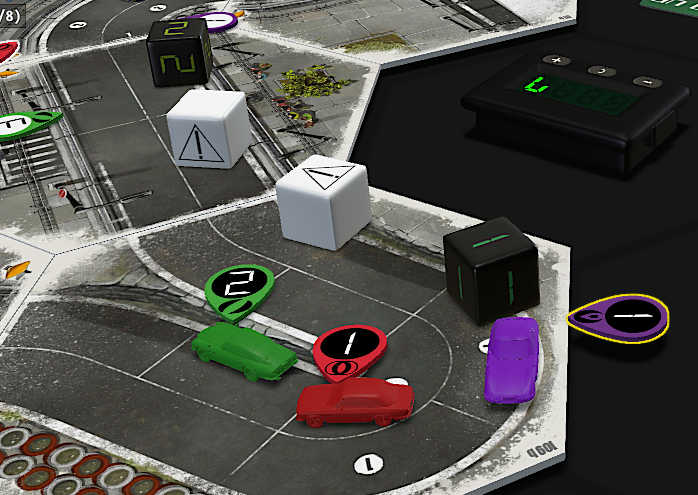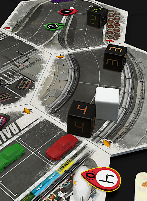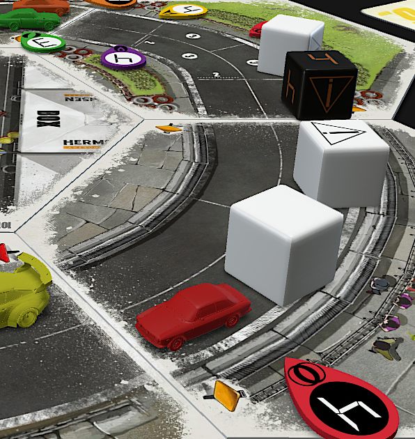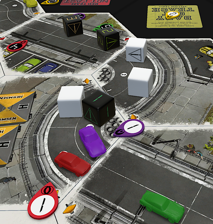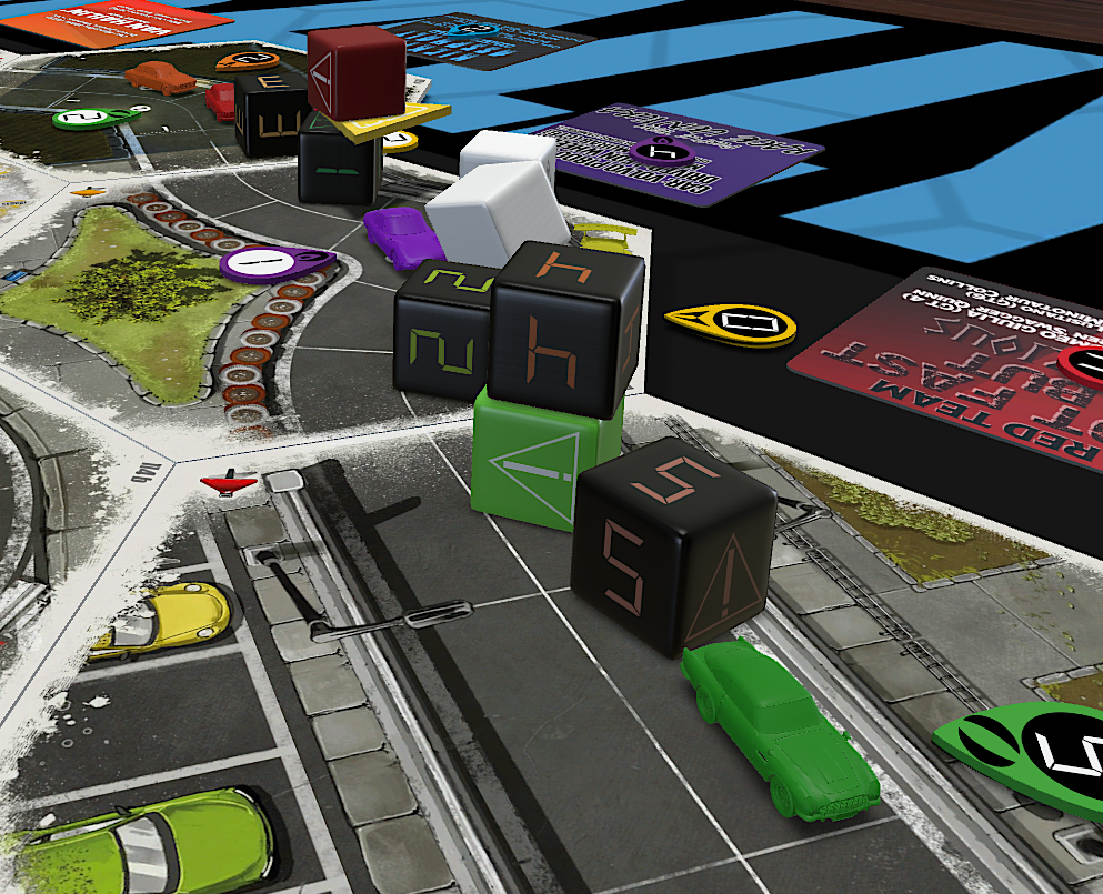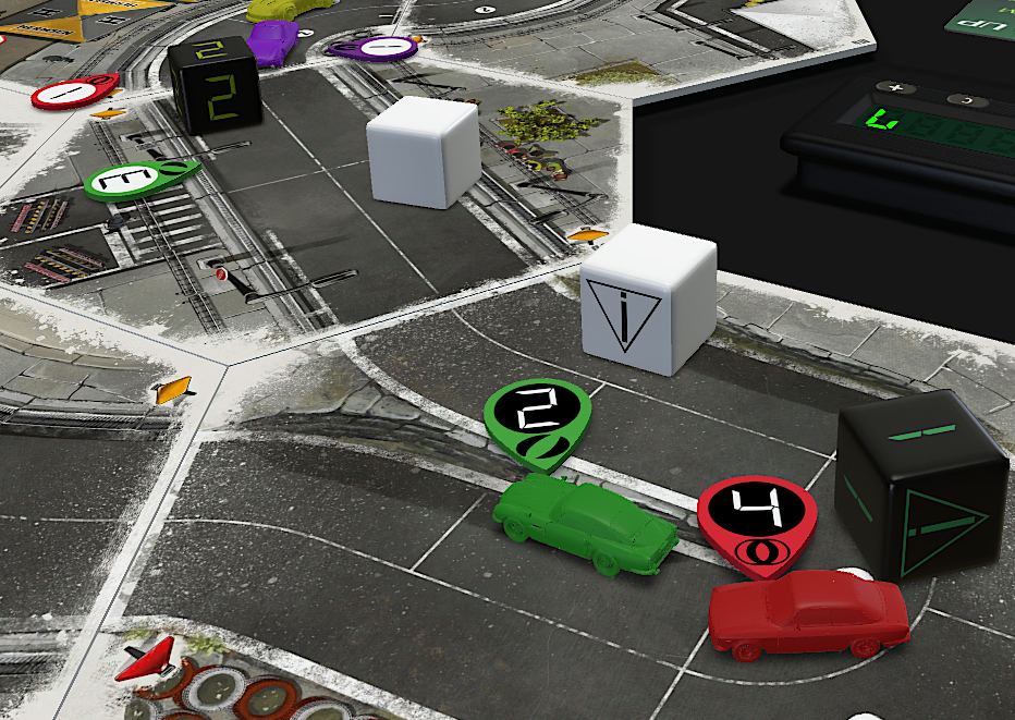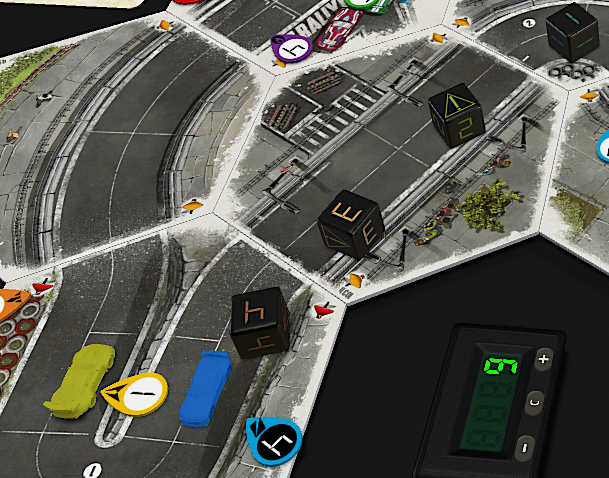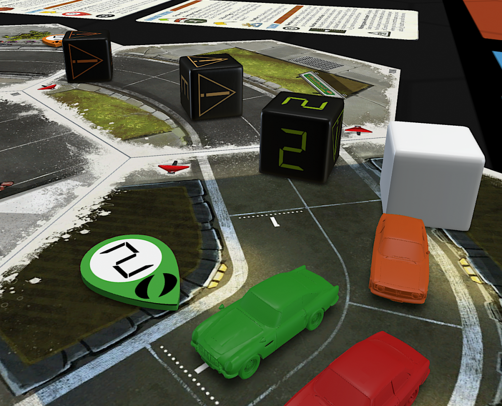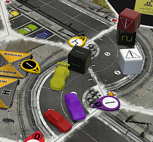 Last to move, the GT-5 at least has a boost dice to try and get through the parking lot next turn.
