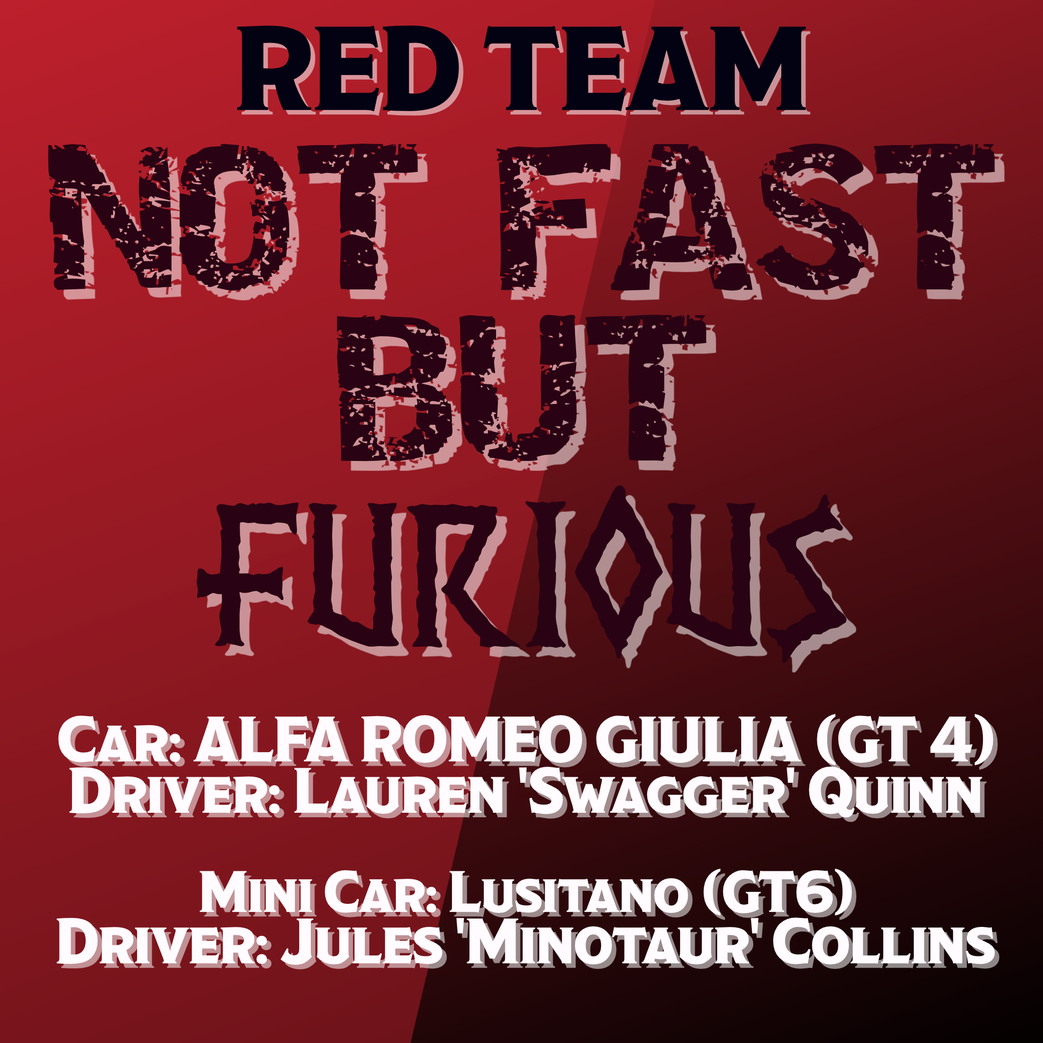 2. Not Fast But Furious – Lauren ‘Swagger’ Quinn in the red Alfa Romeo Giulia (GT-4) – 18 Season Points