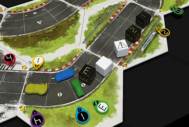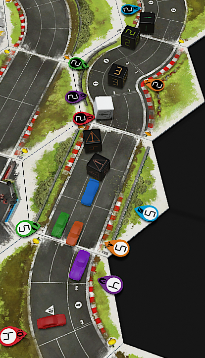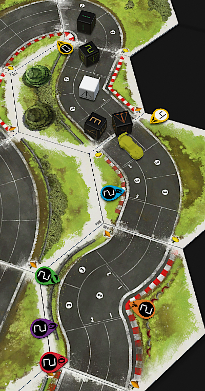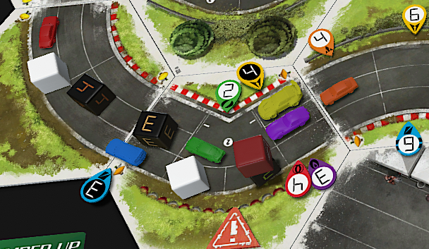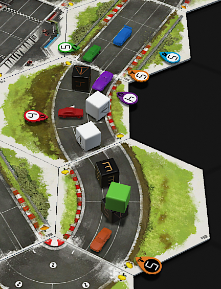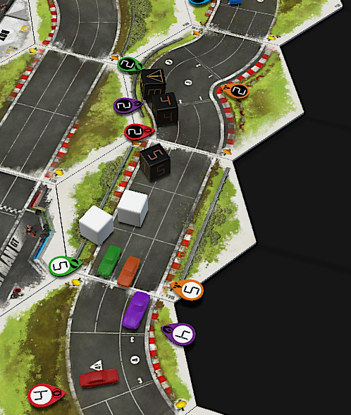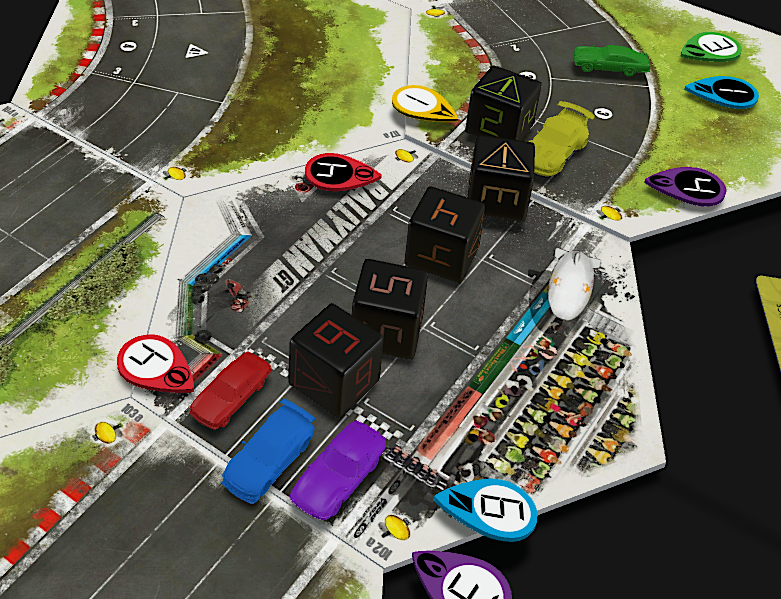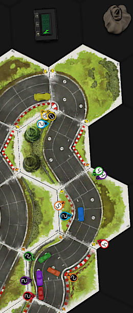 And we’re already seeing player order tossed out the window. Because this is a GT race, play goes from fastest gear to slowest, so Mule and Devil are getting a chance to make up for not getting as far last turn.