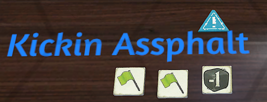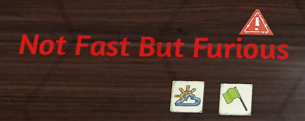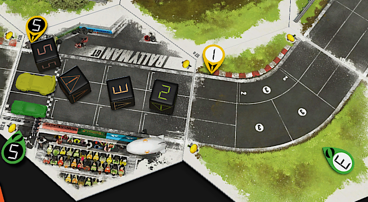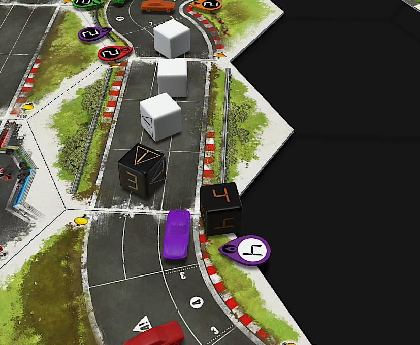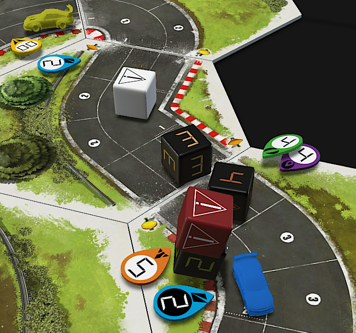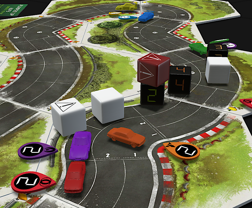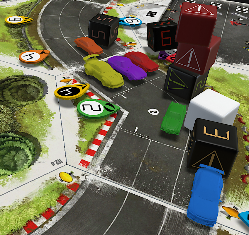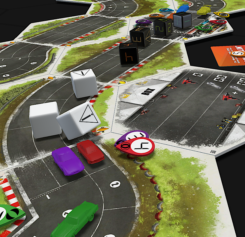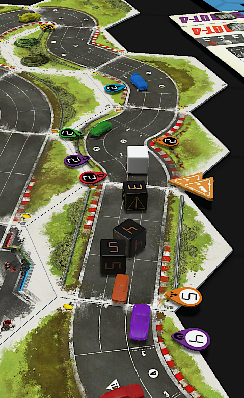 • HEATED WHEELS: All racers go FLAT OUT each turn but gain no Focus. Course trajectory is laid out after the roll is made, and caution results are still observed.