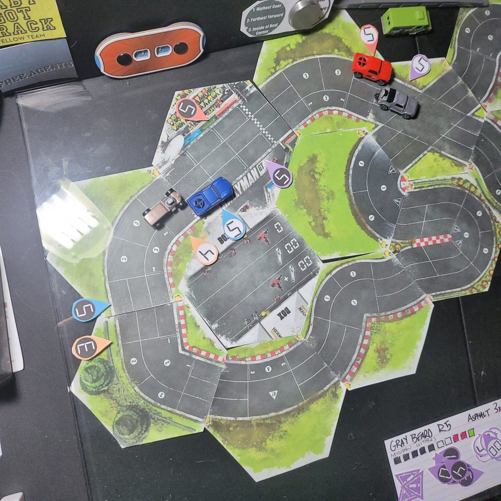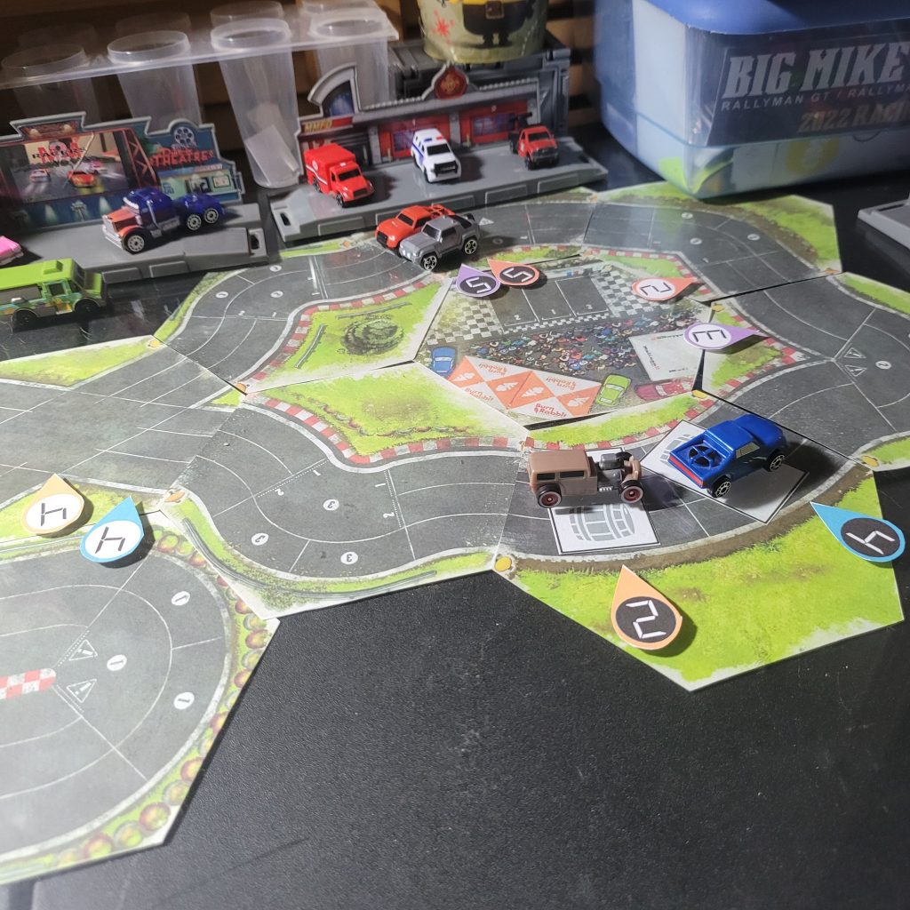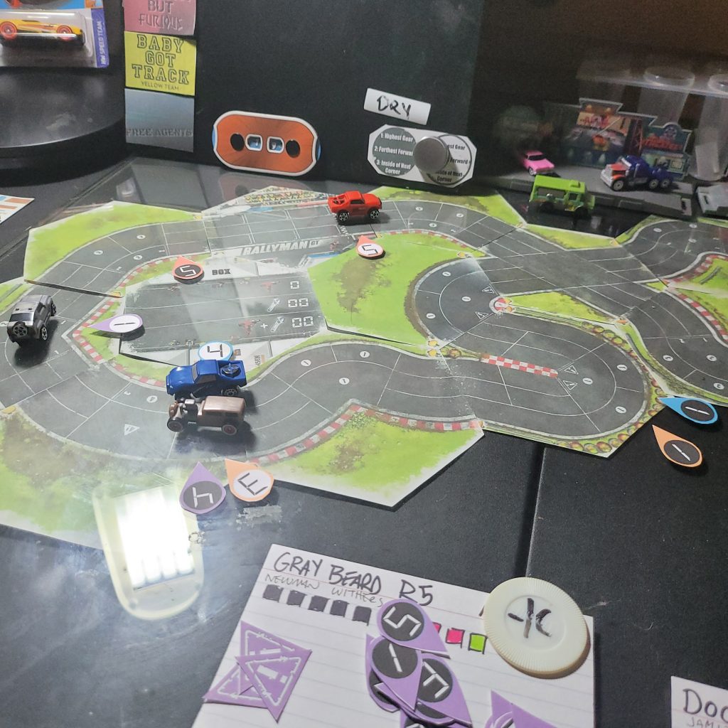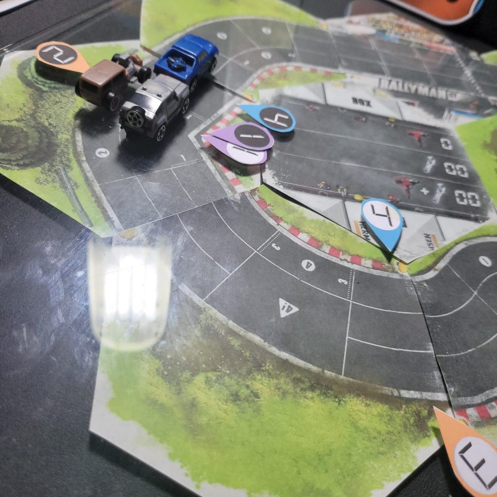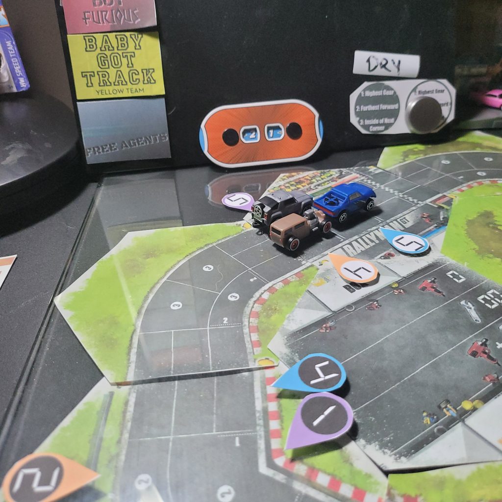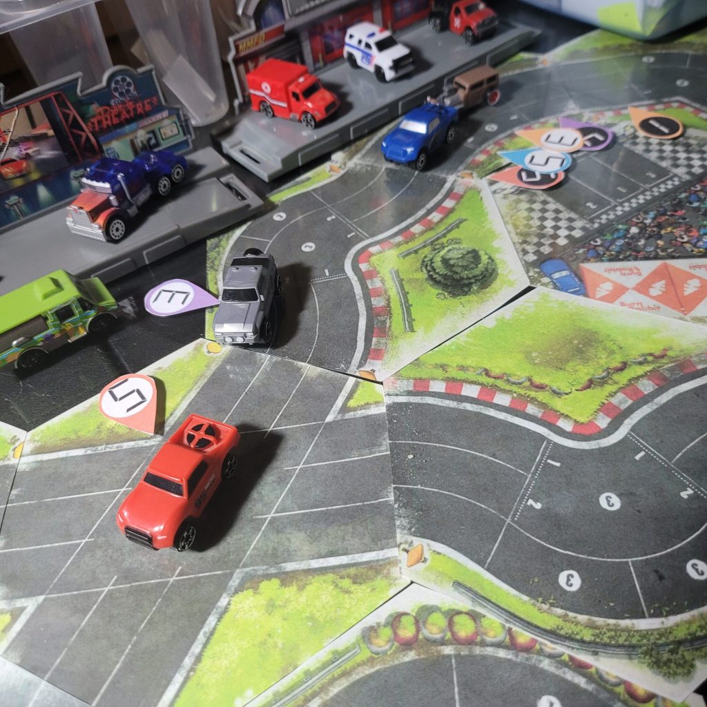 - HEATED WHEELS: All racers go FLAT OUT each turn but gain no Focus. Course trajectory is laid out after the roll is made, and caution results are still observed.