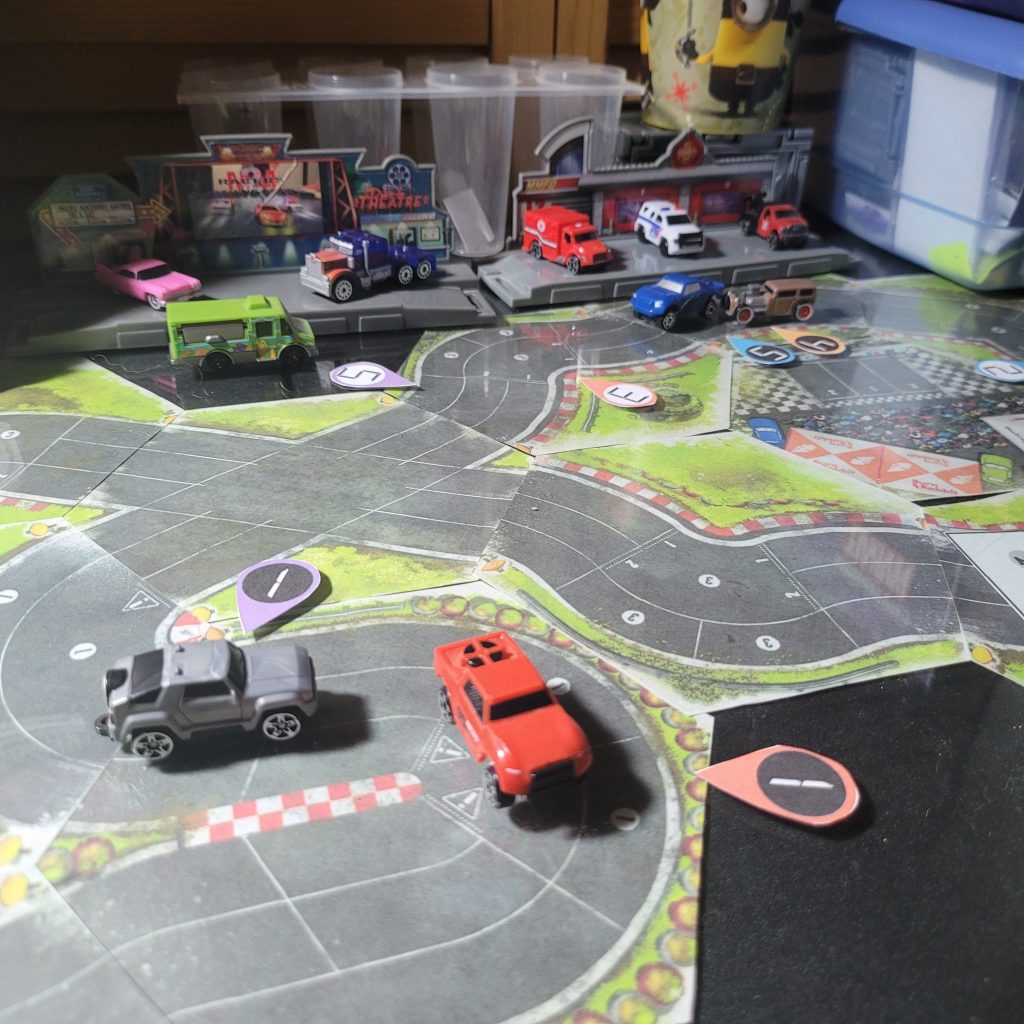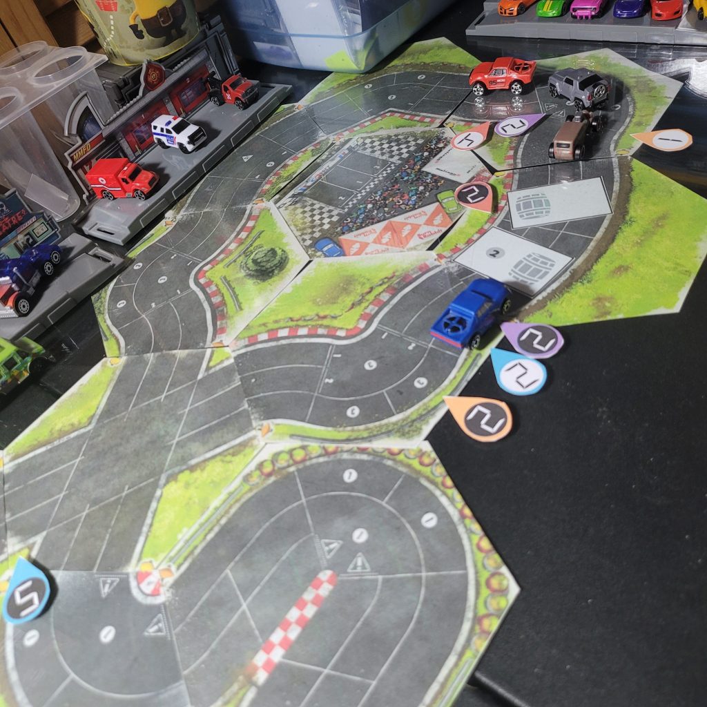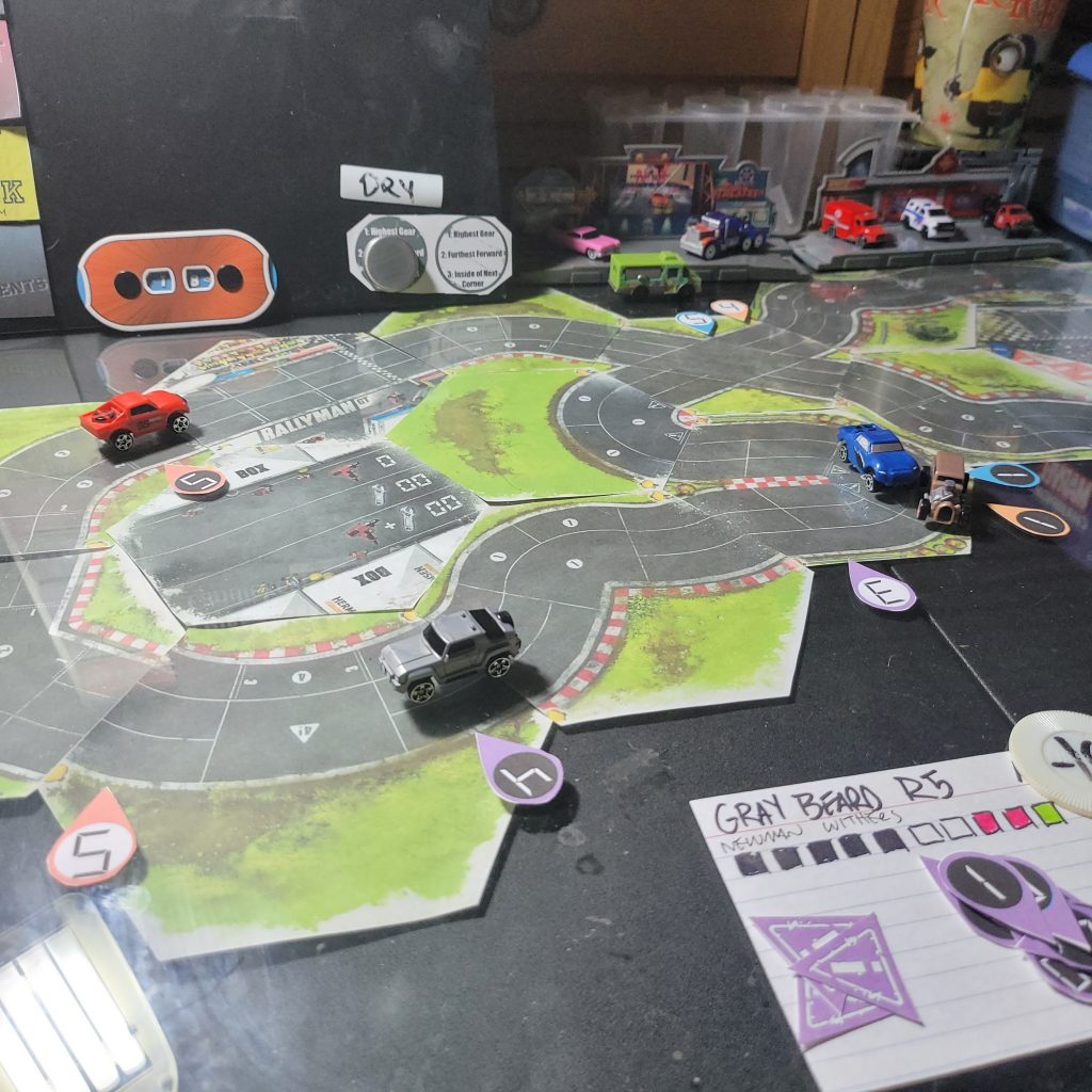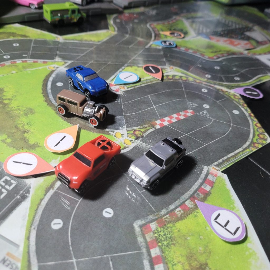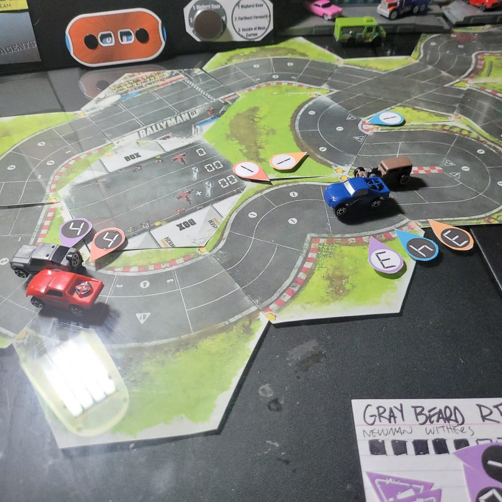 - HEATED WHEELS: All racers go FLAT OUT each turn but gain no Focus. Course trajectory is laid out after the roll is made, and caution results are still observed.