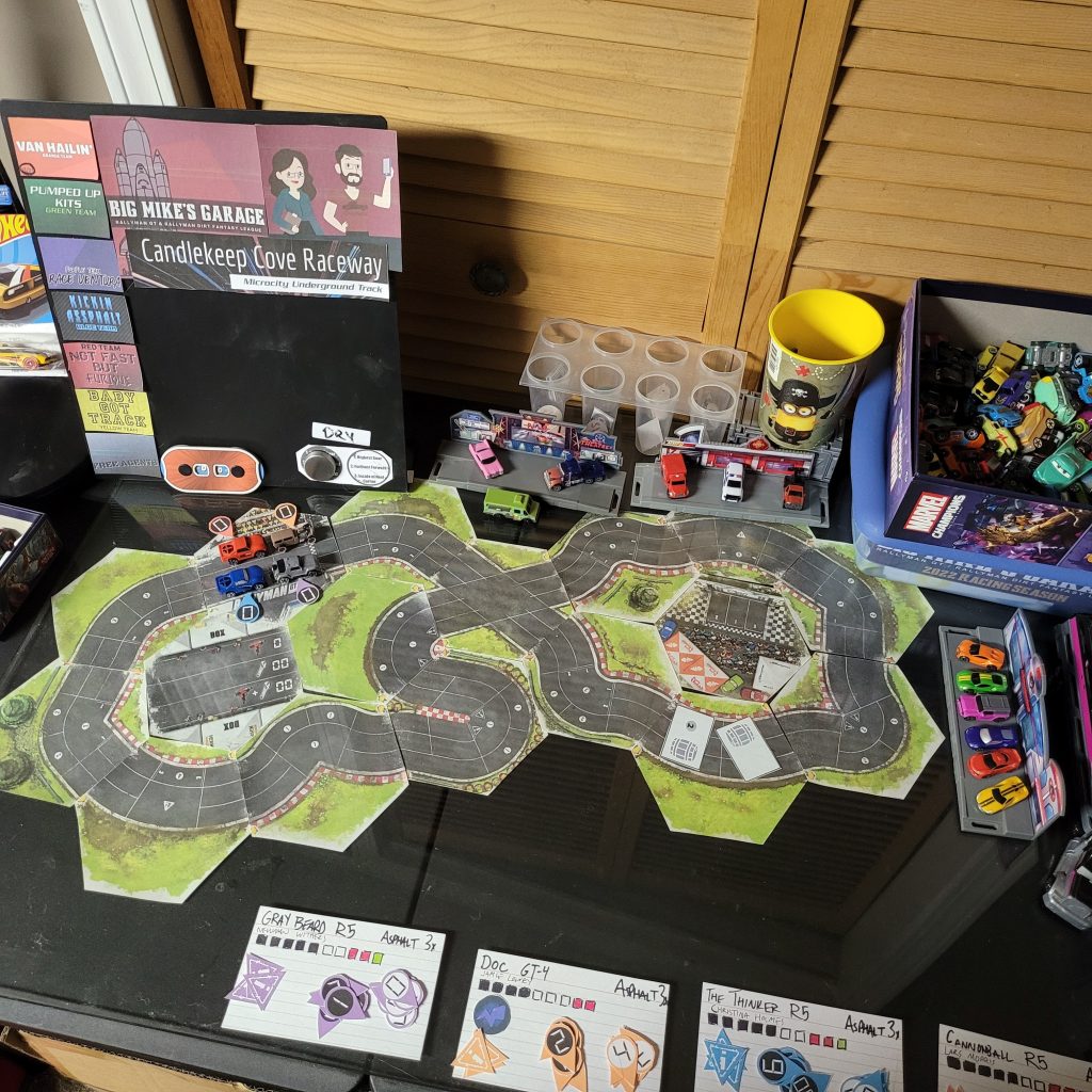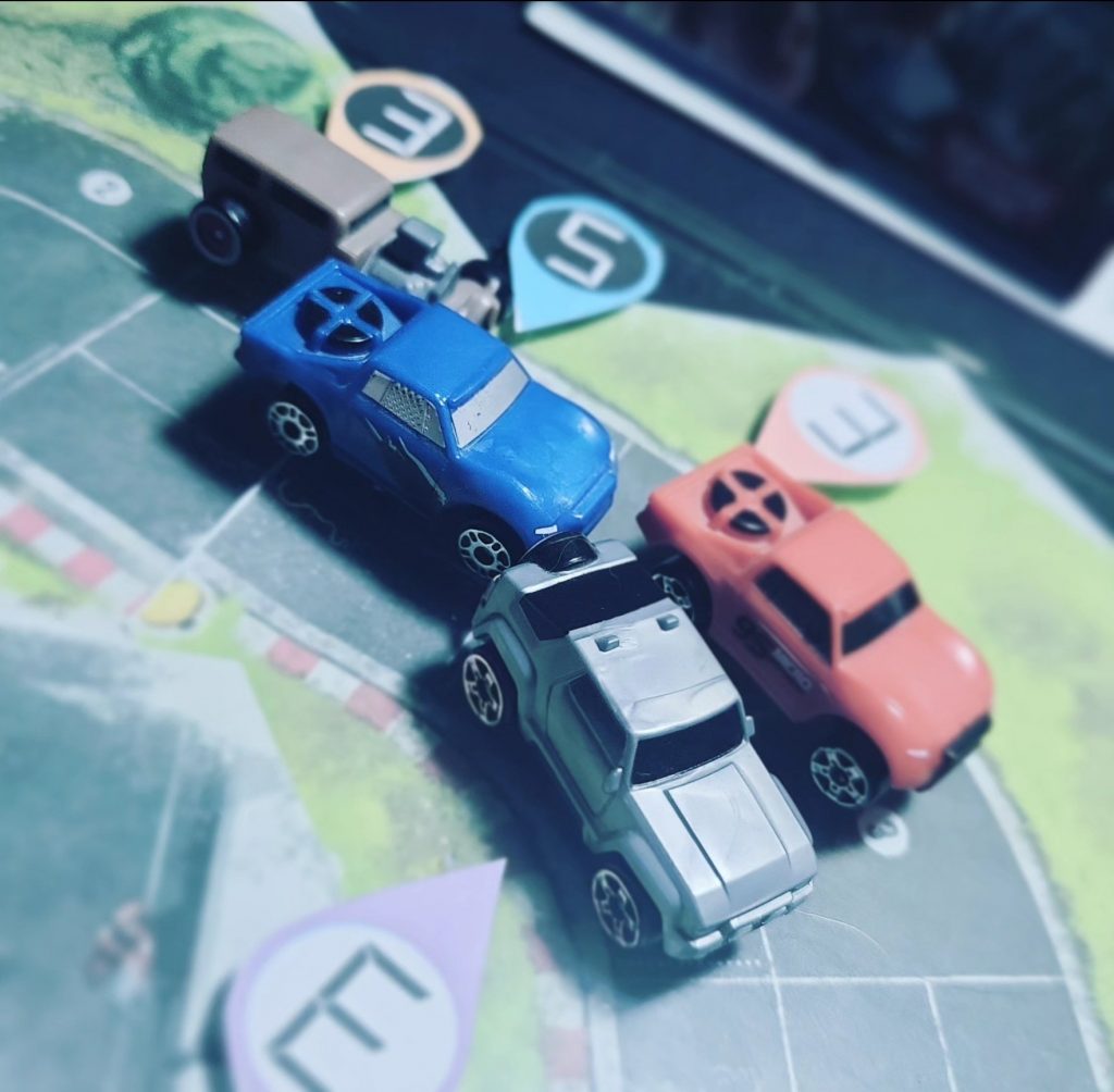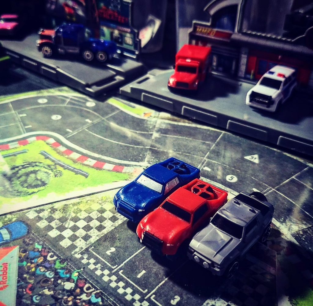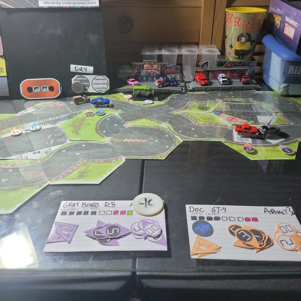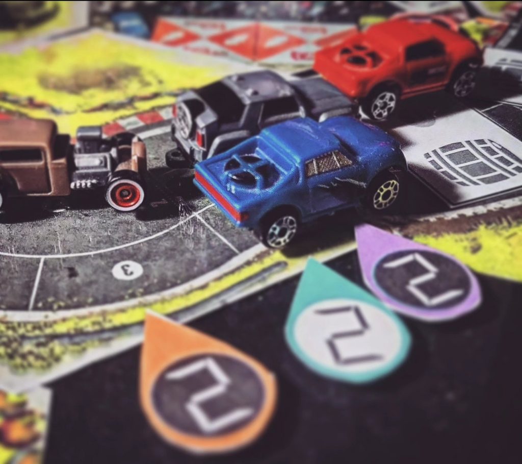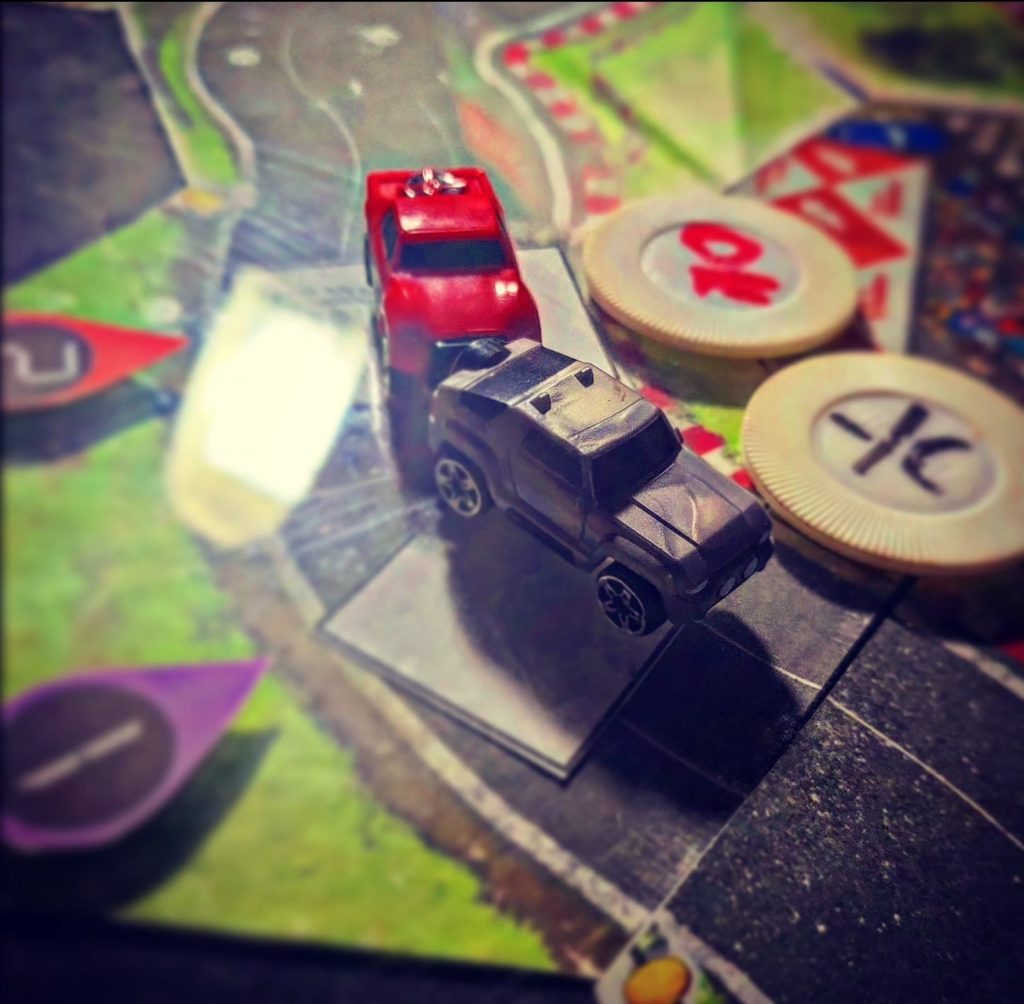 - HEATED WHEELS: All racers go FLAT OUT each turn but gain no Focus. Course trajectory is laid out after the roll is made, and caution results are still observed.