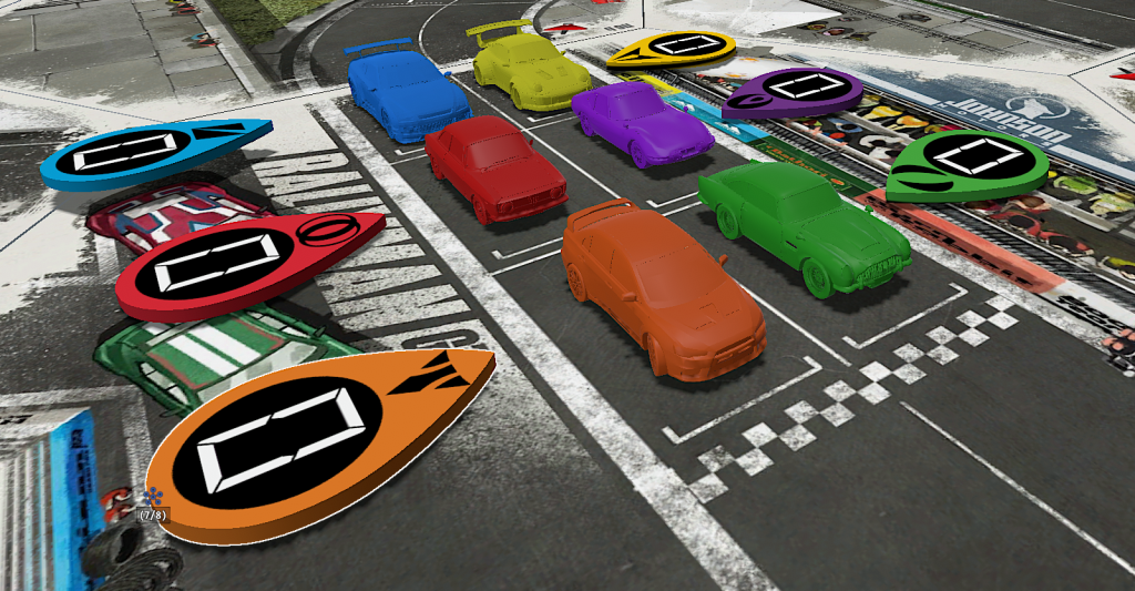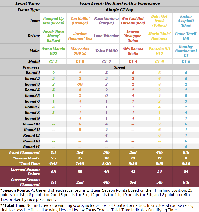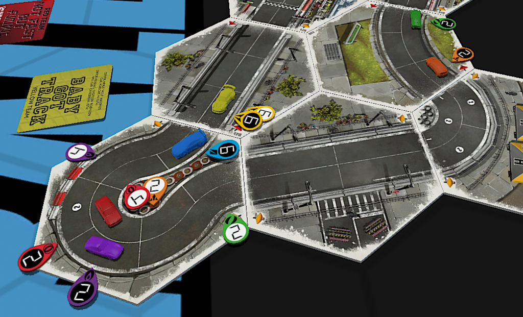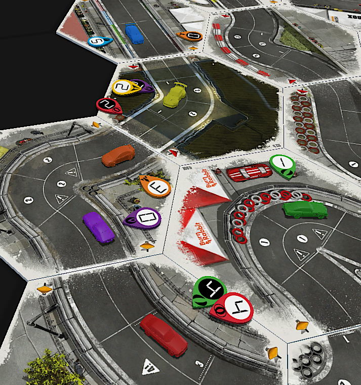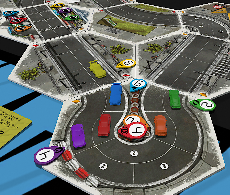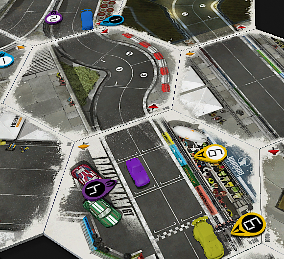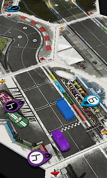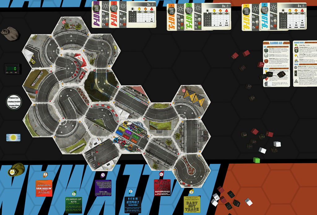 • HEATED WHEELS: All racers go FLAT OUT each turn but gain no Focus. Course trajectory is laid out after the roll is made, and caution results are still observed.