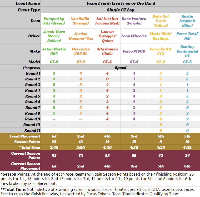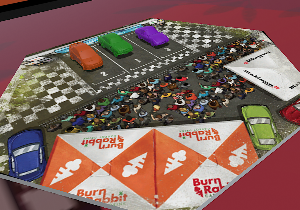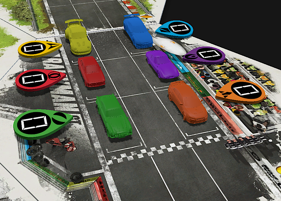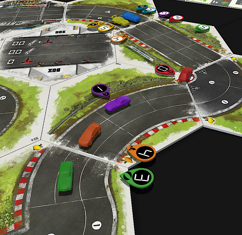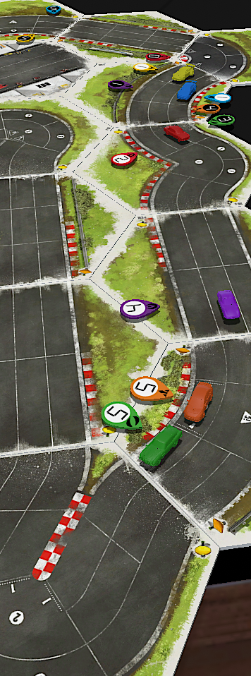 • HEATED WHEELS: All racers go FLAT OUT each turn but gain no Focus. Course trajectory is laid out after the roll is made, and caution results are still observed.
