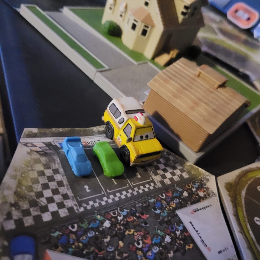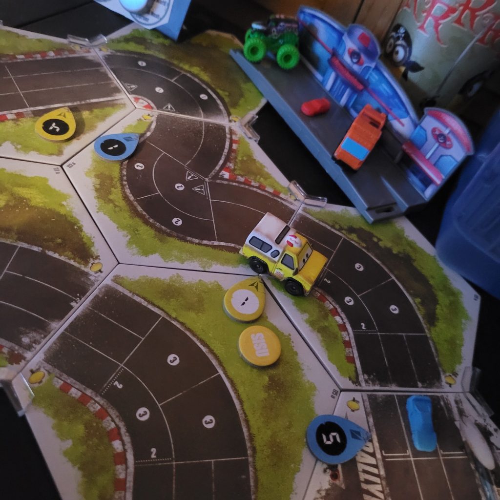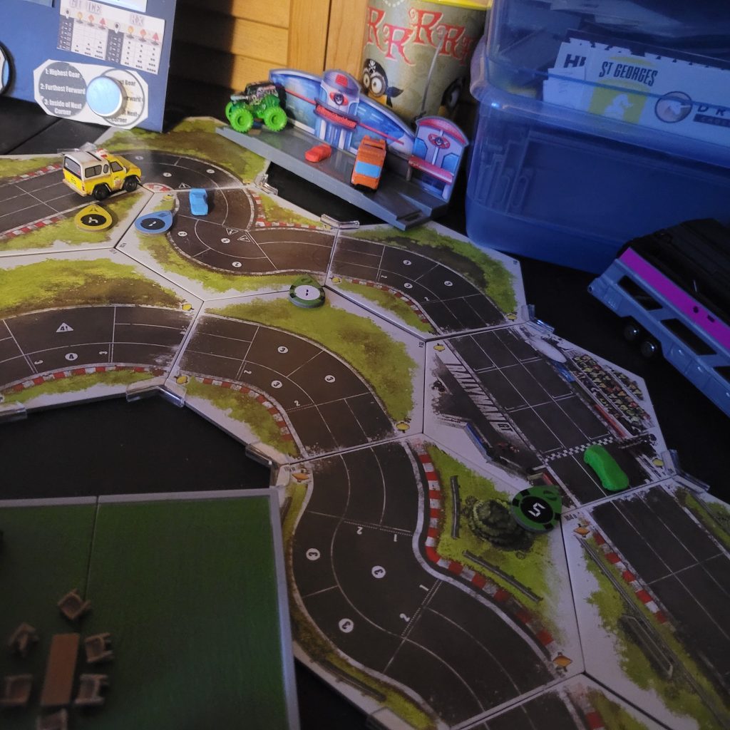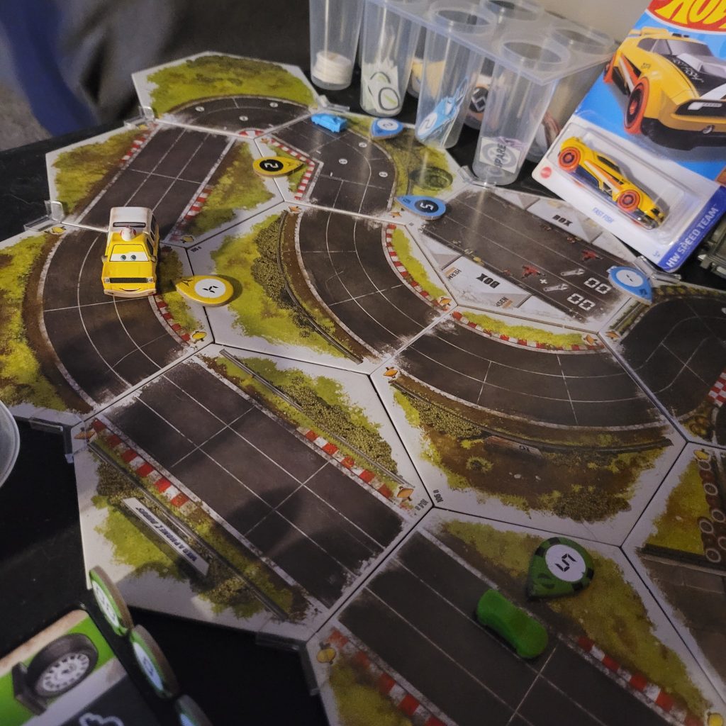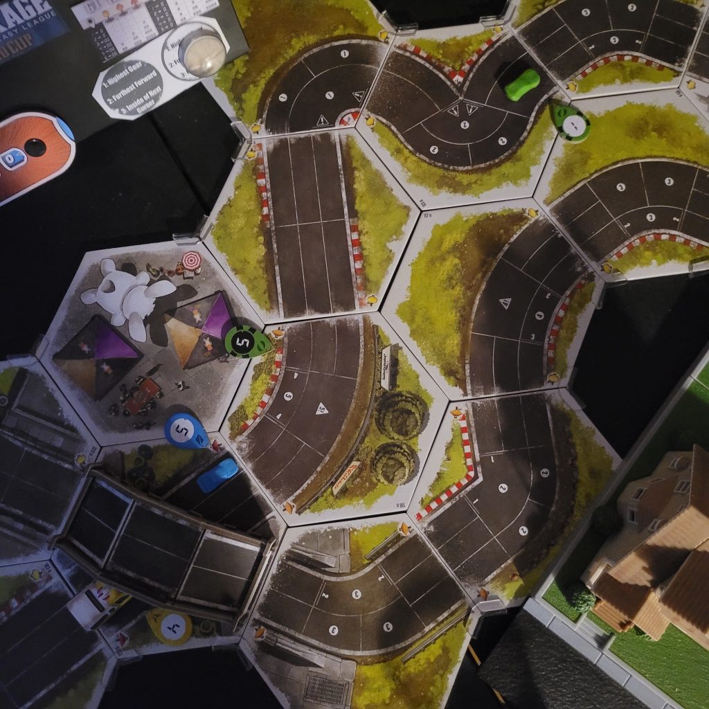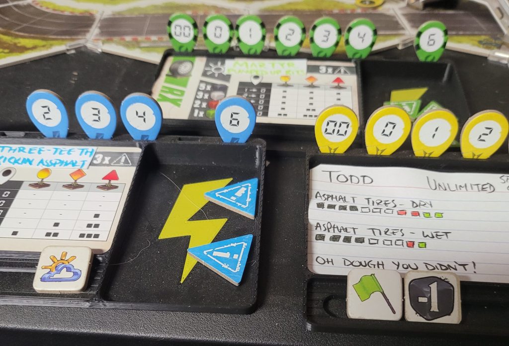 - HEATED WHEELS: All racers go FLAT OUT each turn but gain no Focus. Course trajectory is laid out after the roll is made, and caution results are still observed.