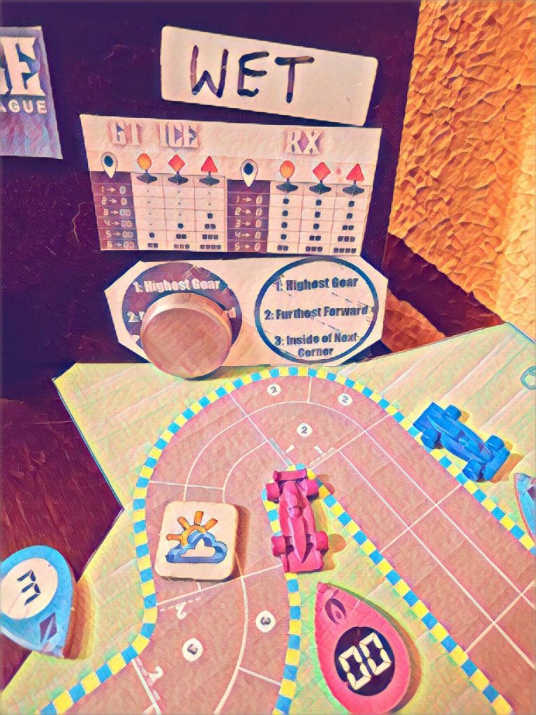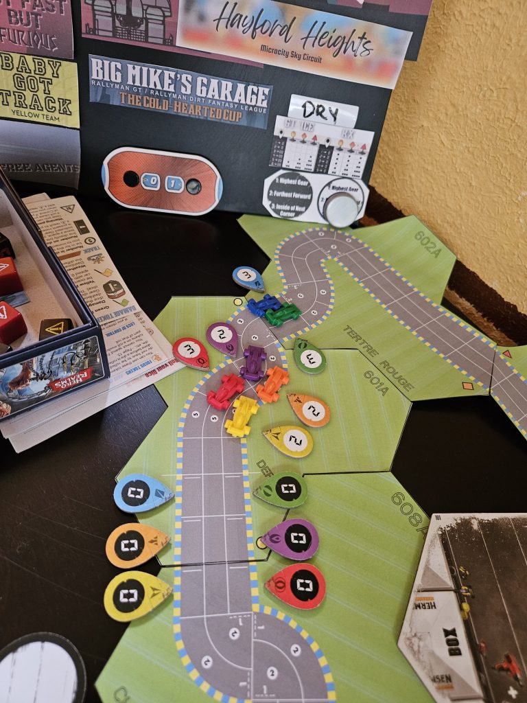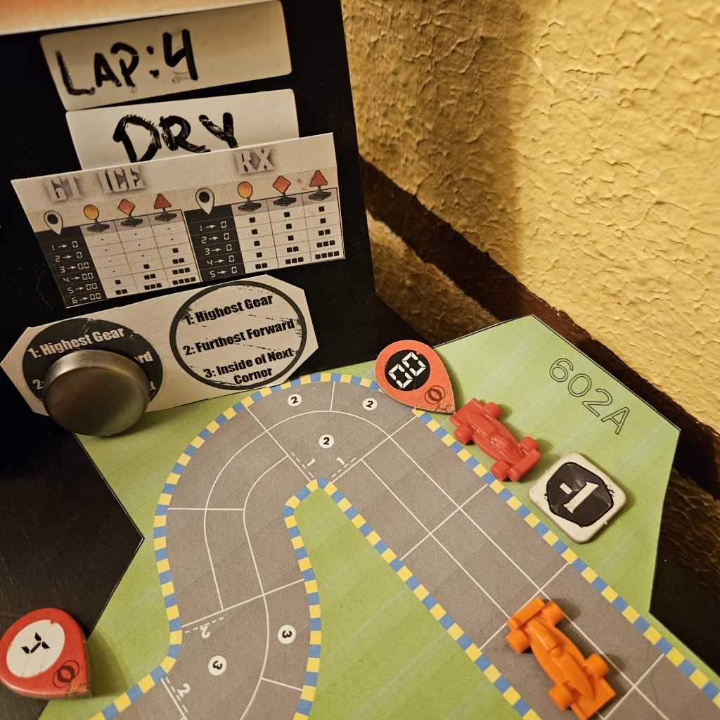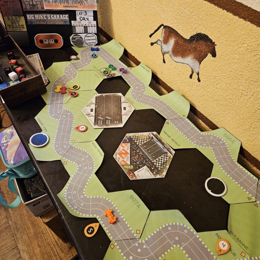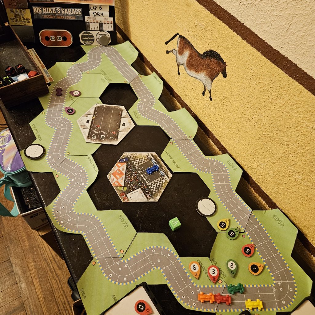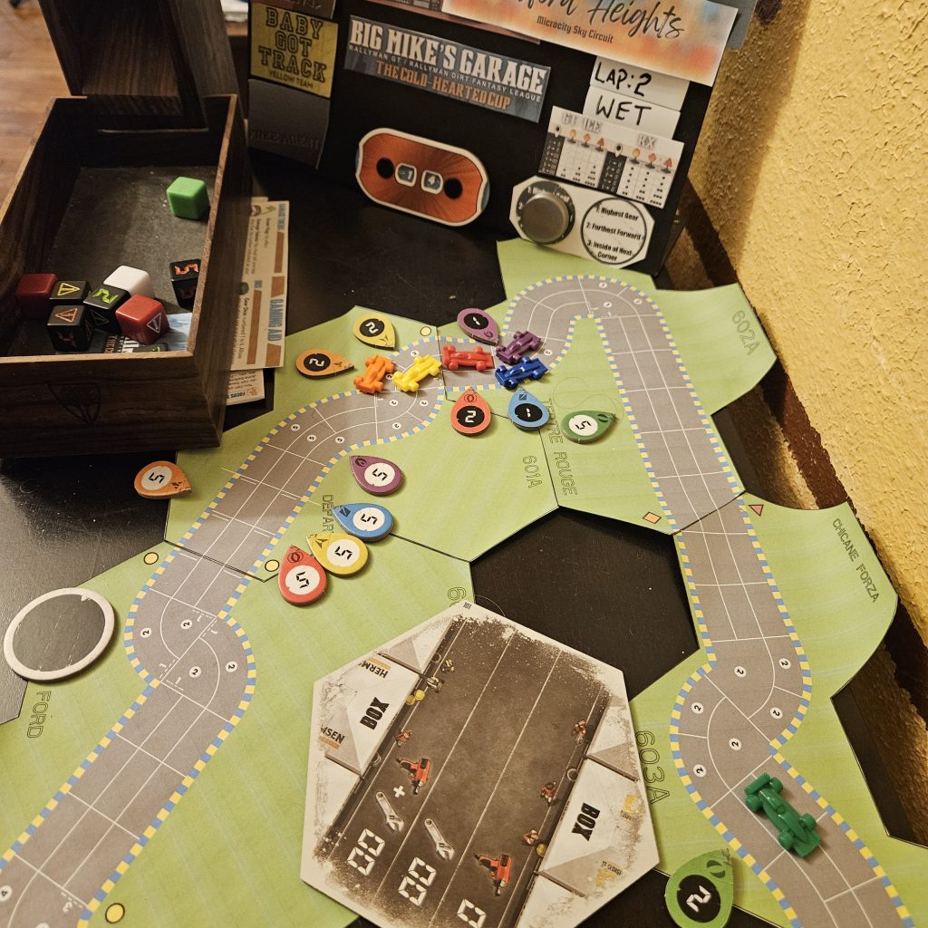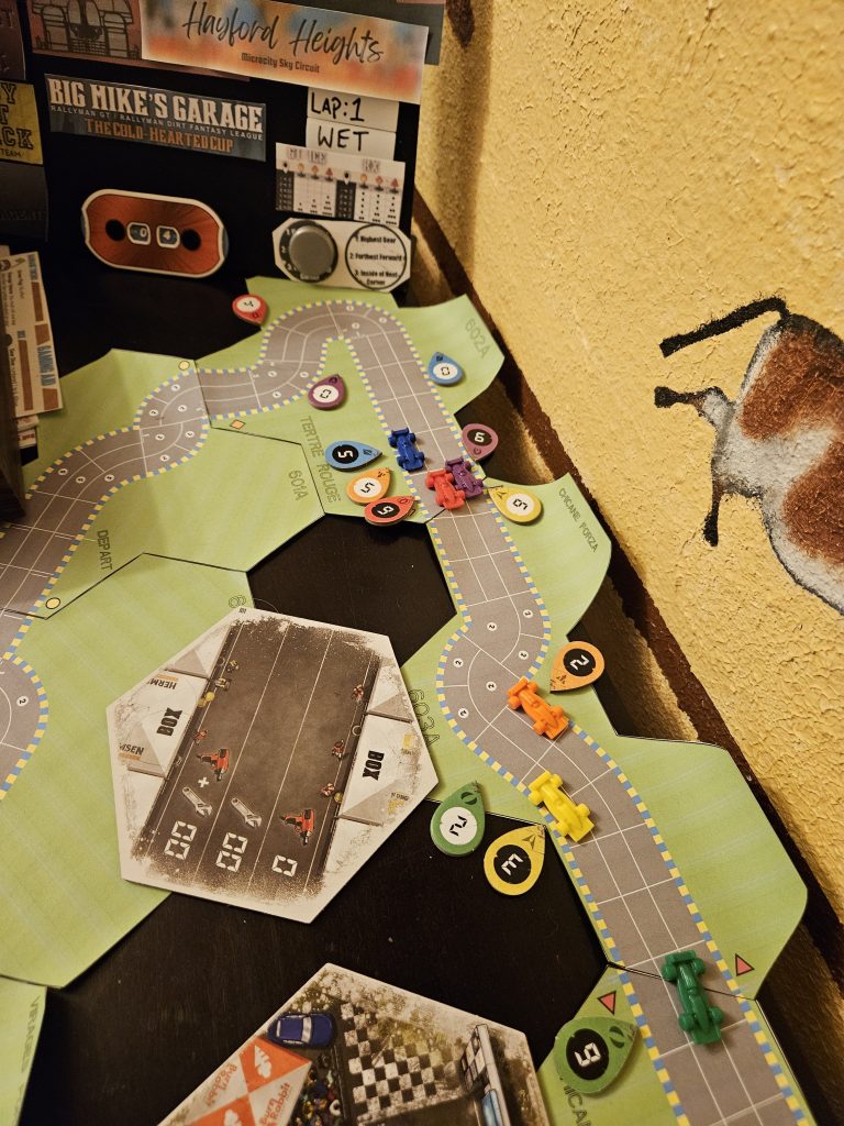 - HEATED WHEELS: All racers go FLAT OUT each turn but gain no Focus. Course trajectory is laid out after the roll is made, and caution results are still observed.