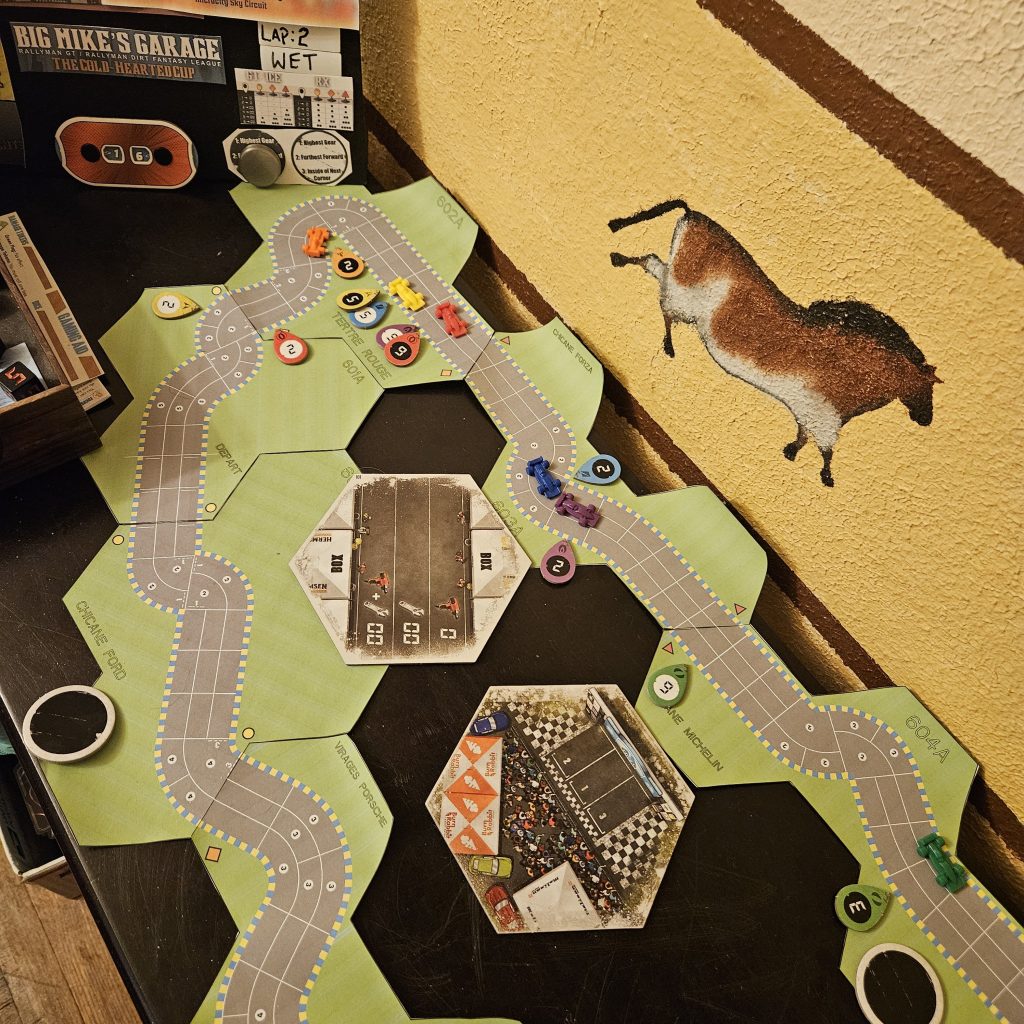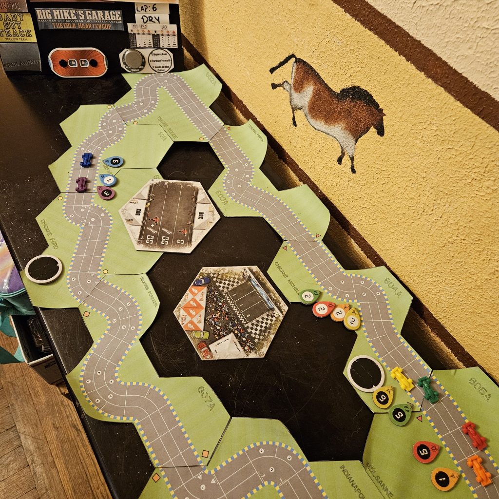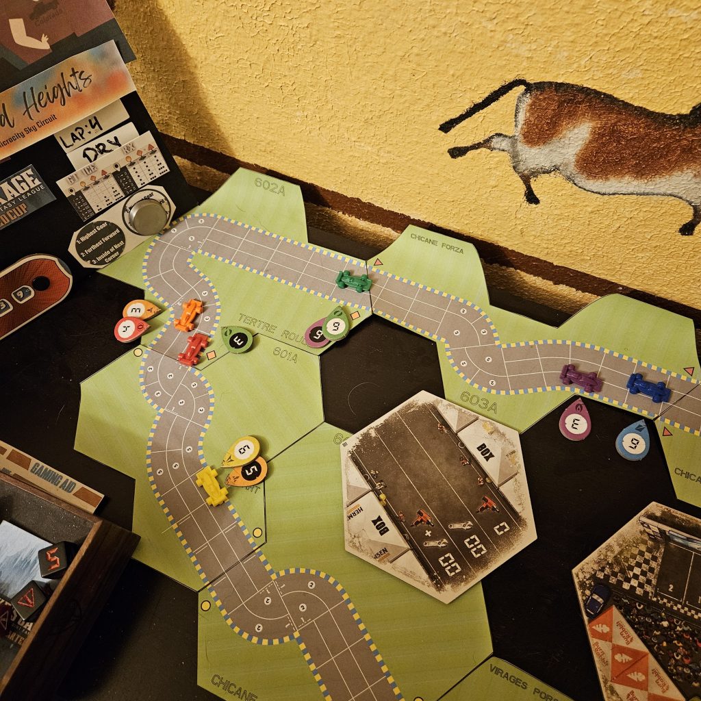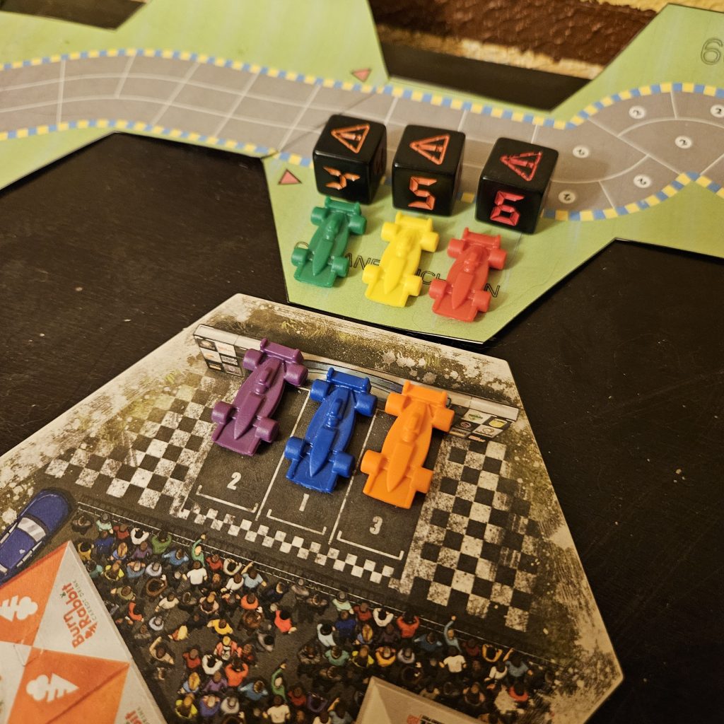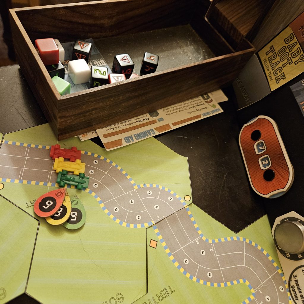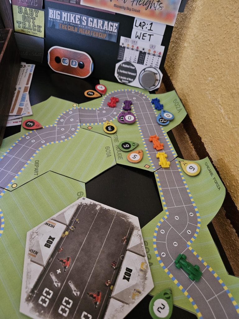 - HEATED WHEELS: All racers go FLAT OUT each turn but gain no Focus. Course trajectory is laid out after the roll is made, and caution results are still observed.