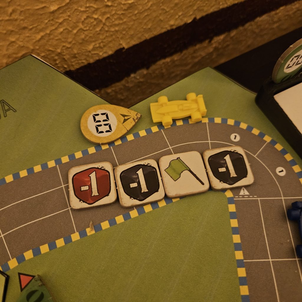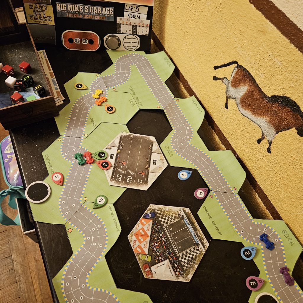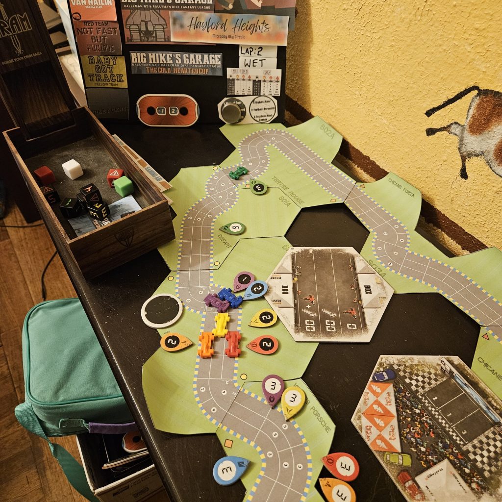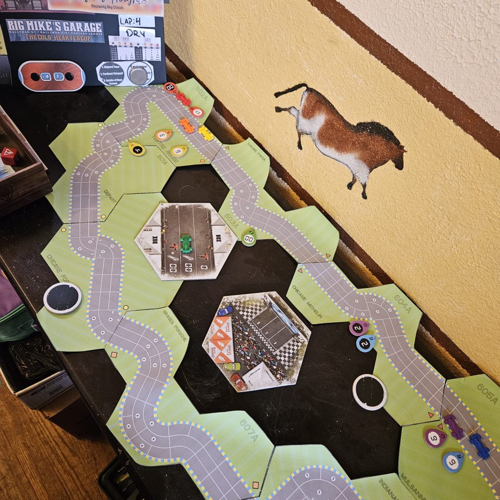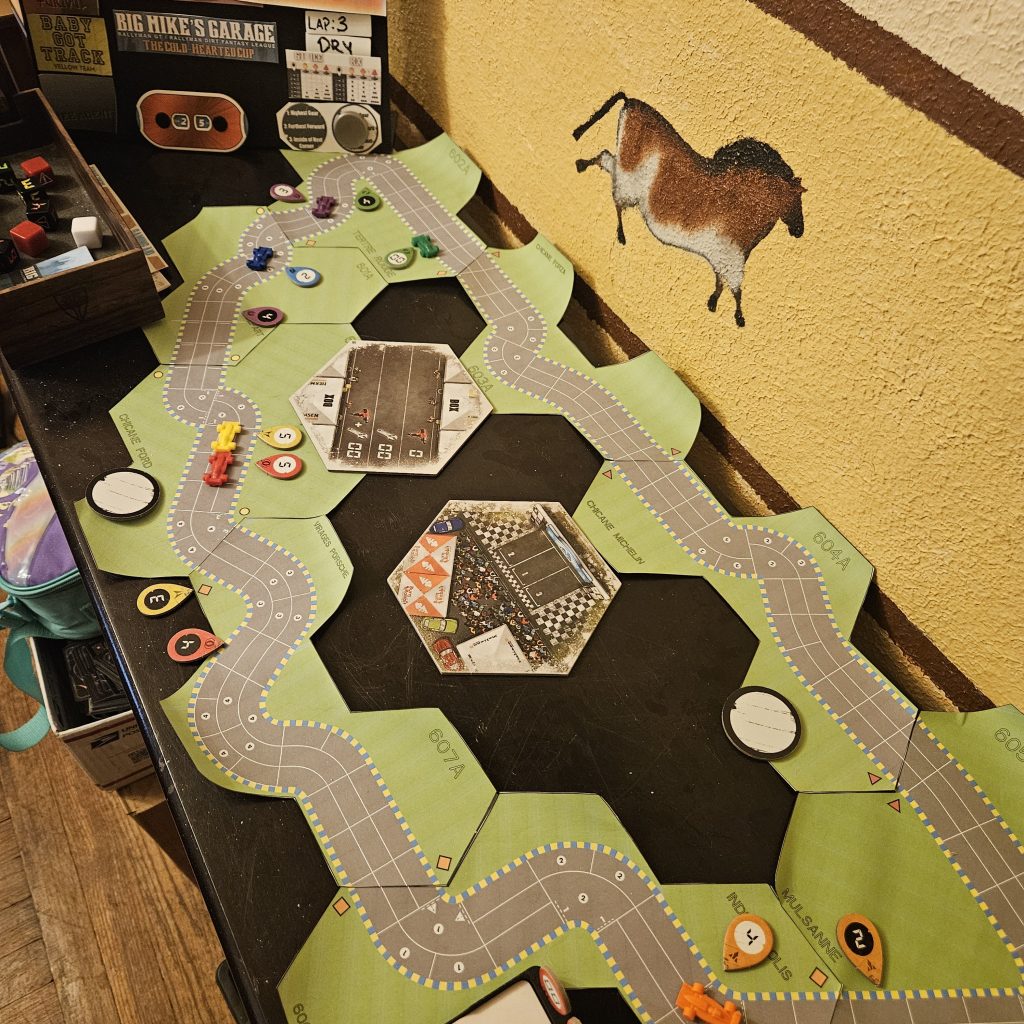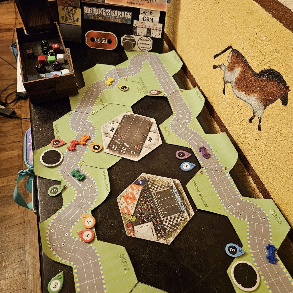- HEATED WHEELS: All racers go FLAT OUT each turn but gain no Focus. Course trajectory is laid out after the roll is made, and caution results are still observed.