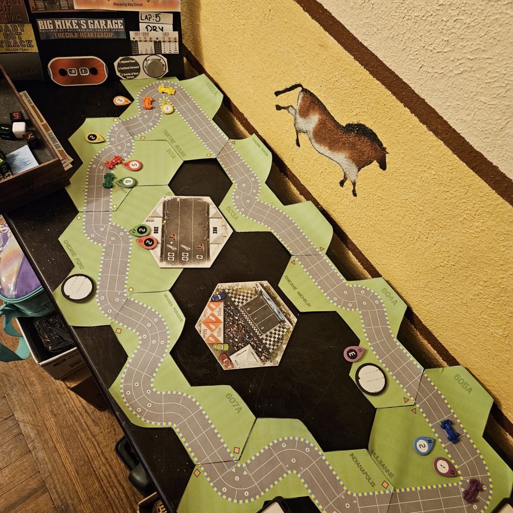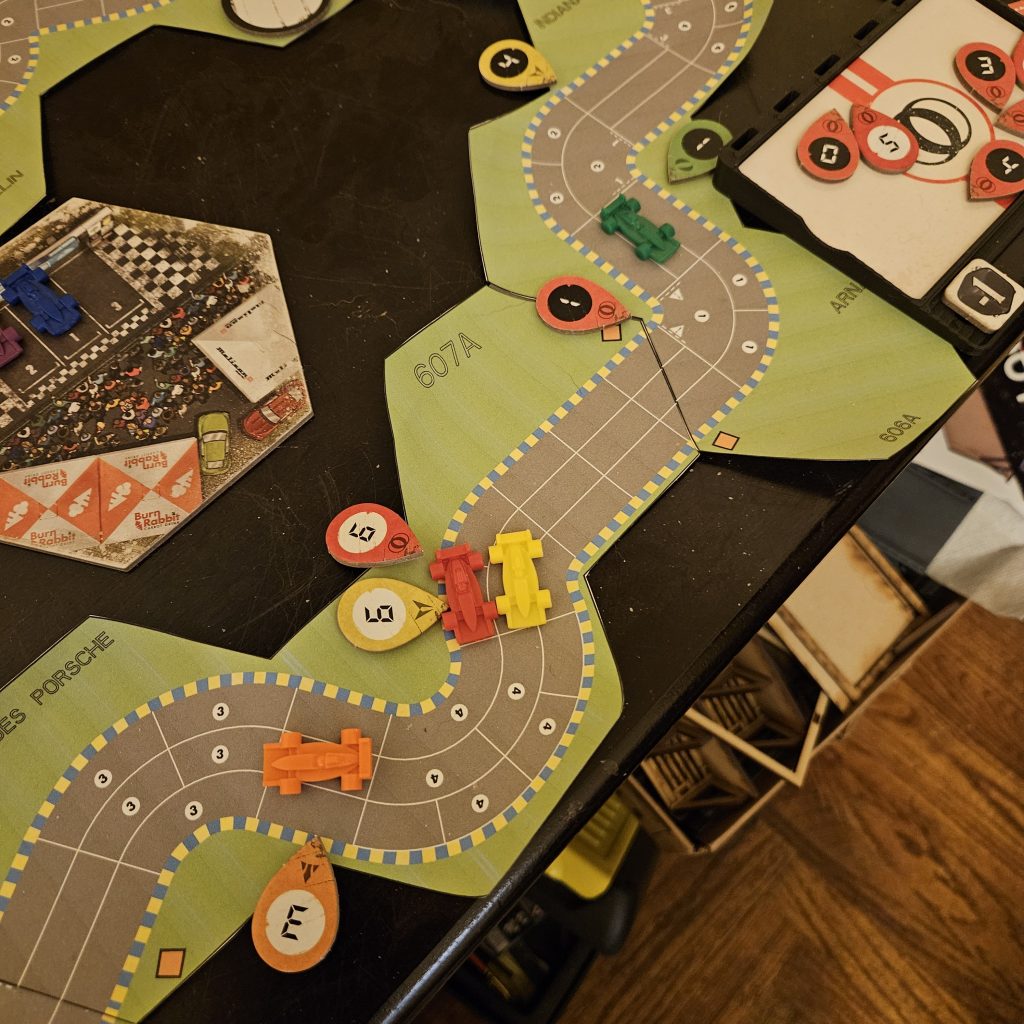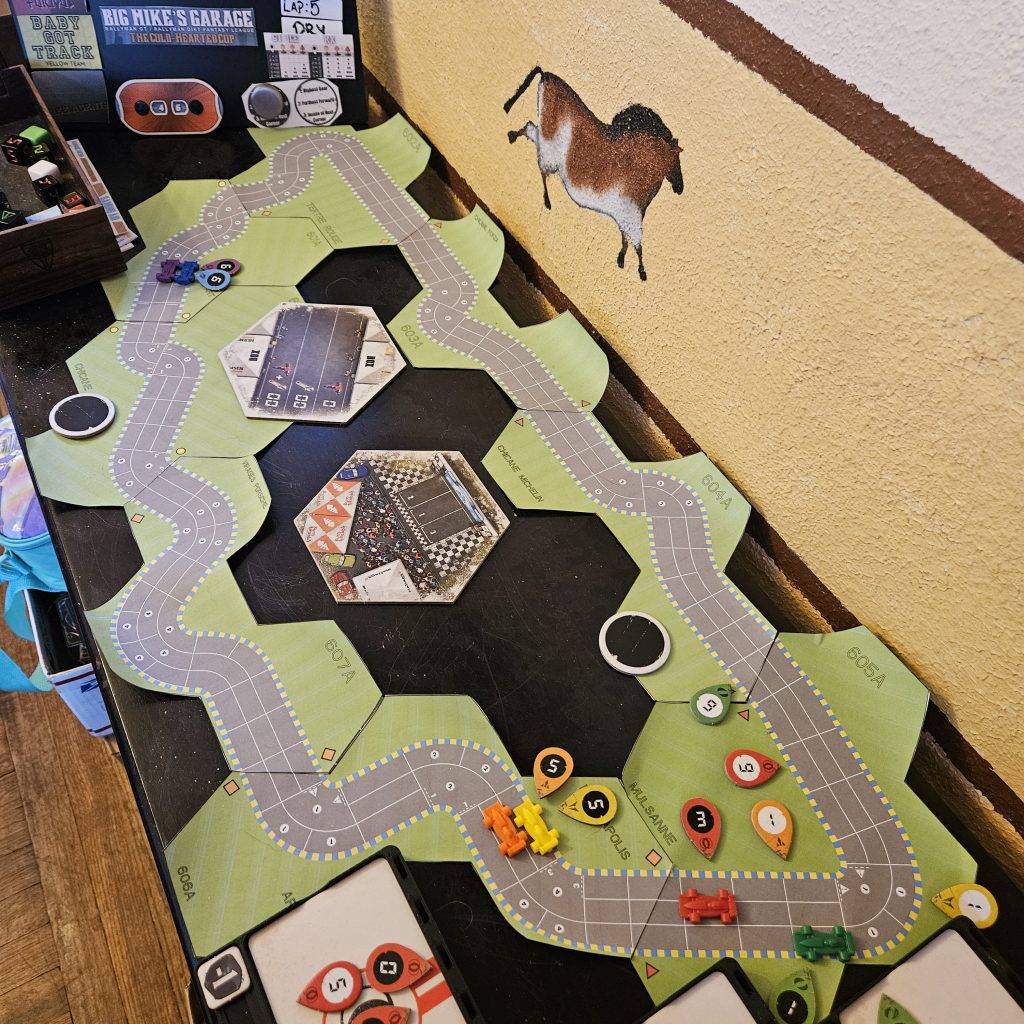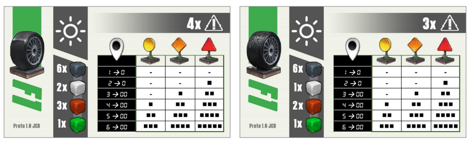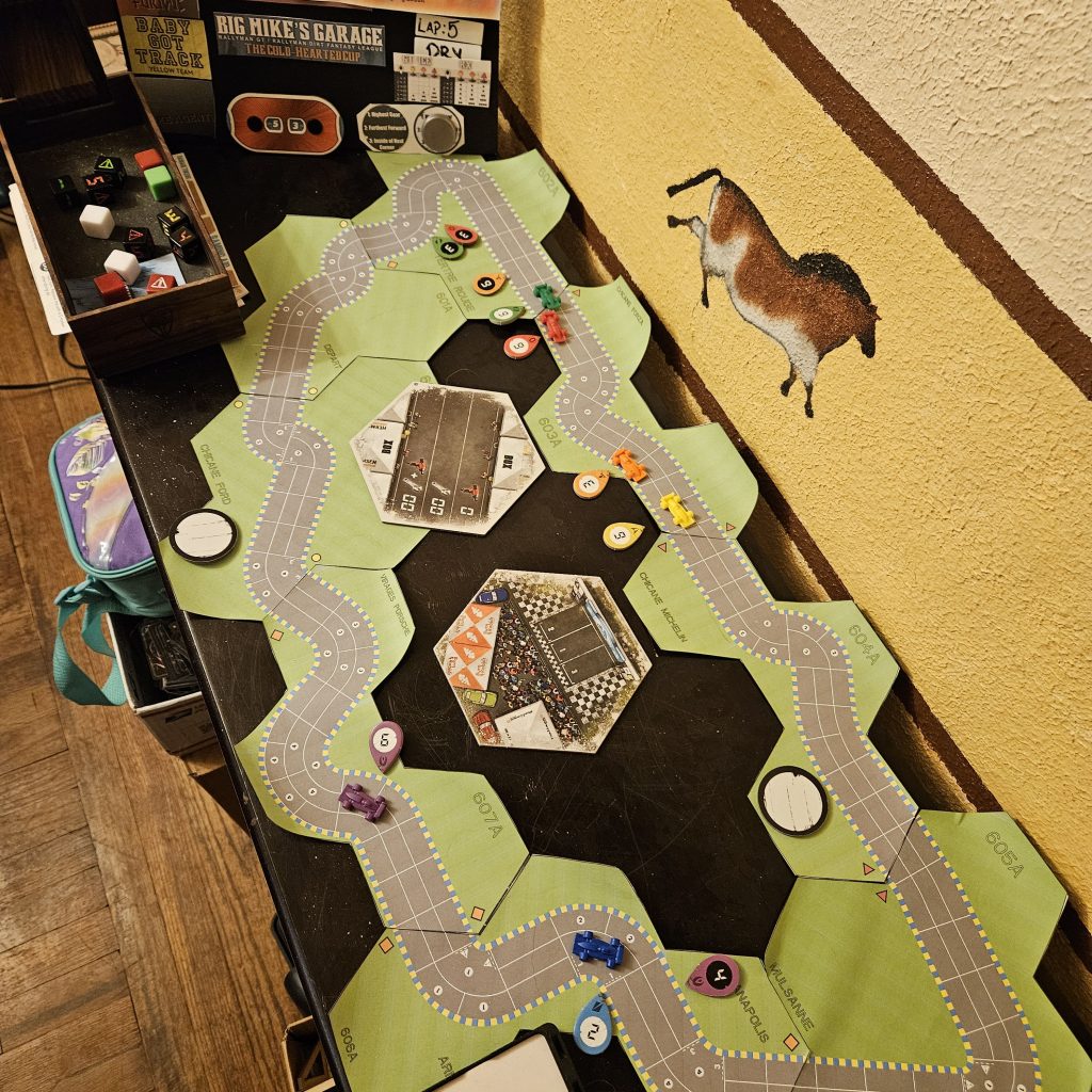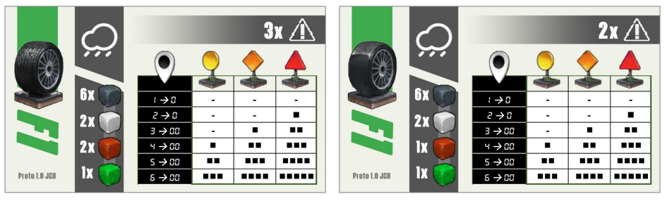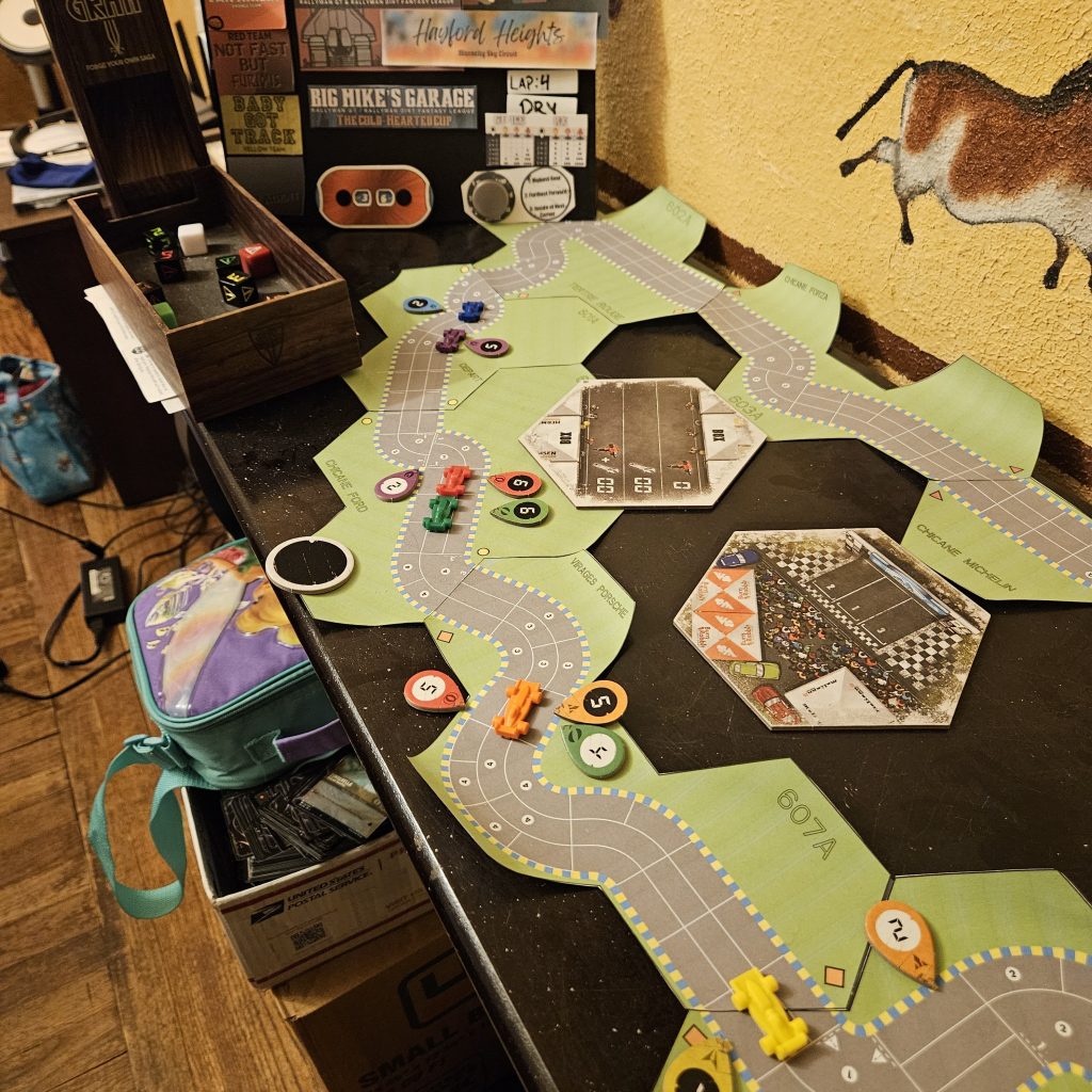 - HEATED WHEELS: All racers go FLAT OUT each turn but gain no Focus. Course trajectory is laid out after the roll is made, and caution results are still observed.