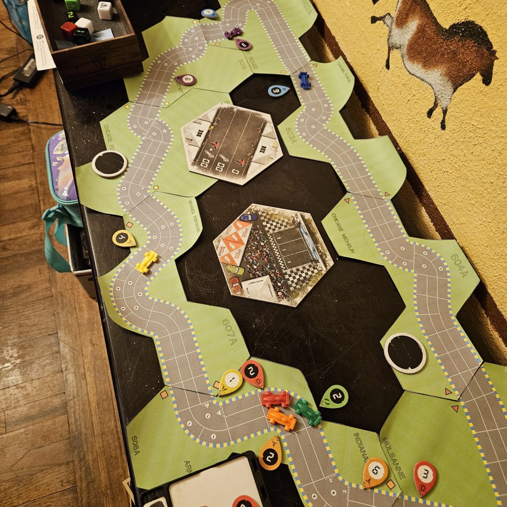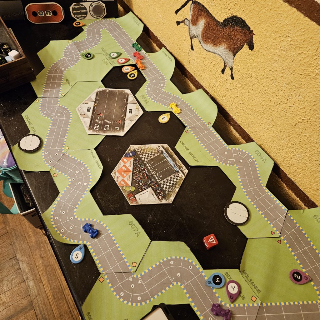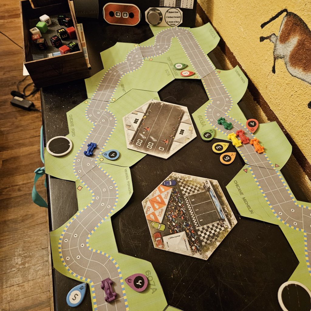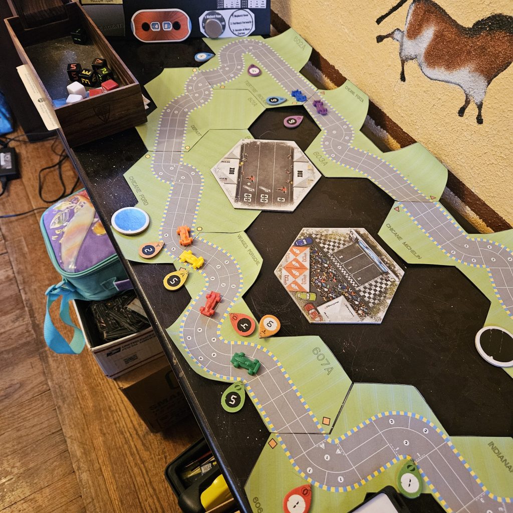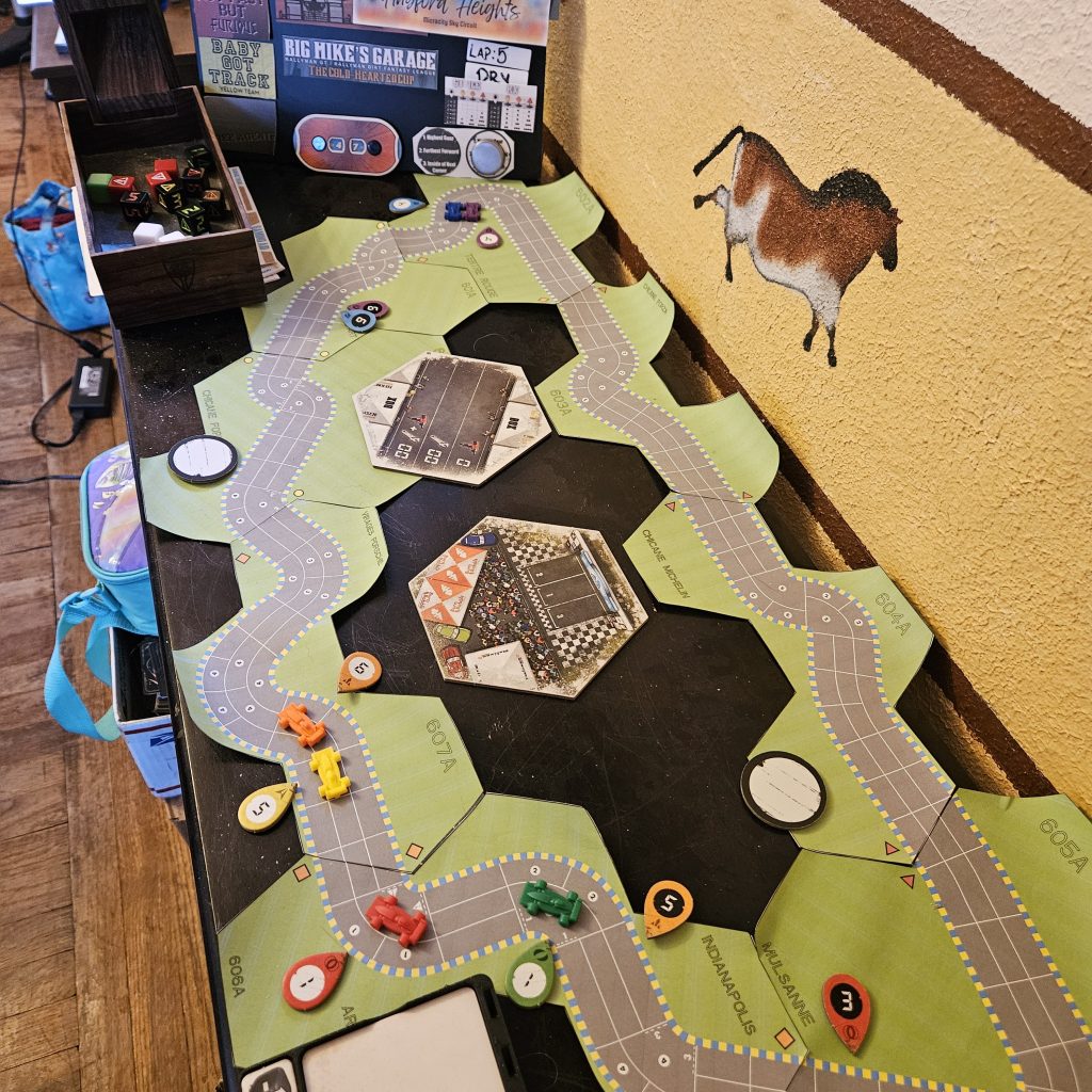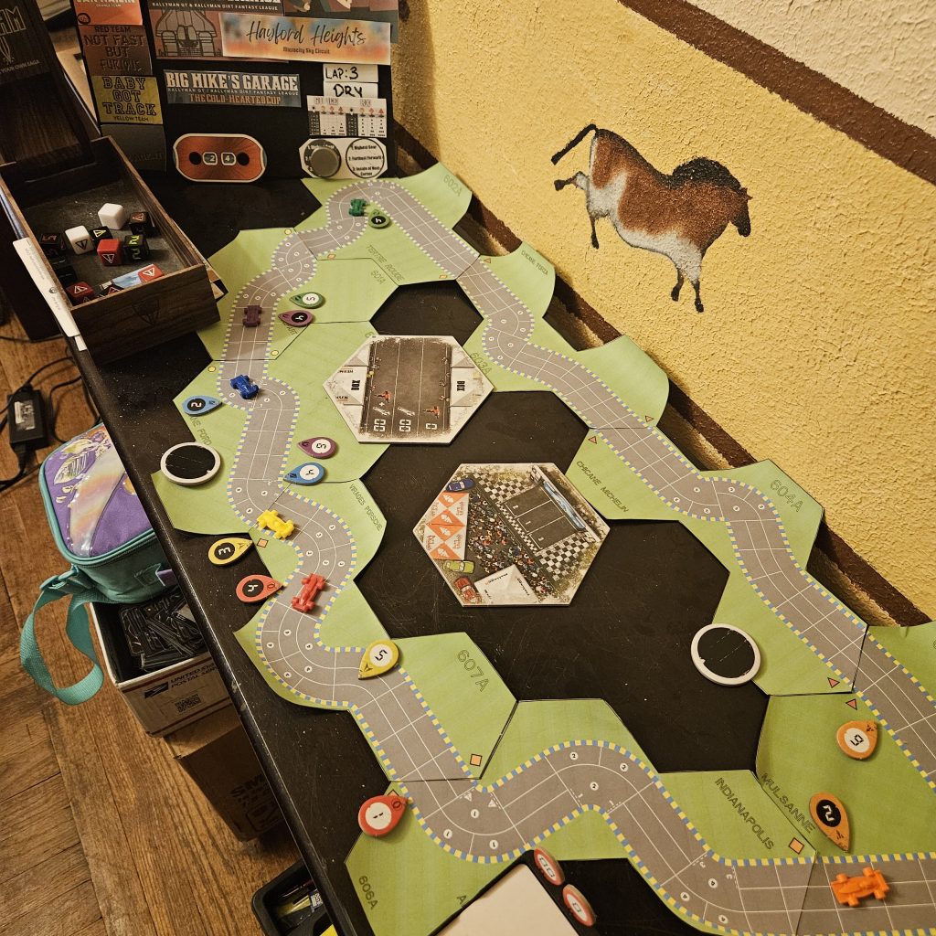 - HEATED WHEELS: All racers go FLAT OUT each turn but gain no Focus. Course trajectory is laid out after the roll is made, and caution results are still observed.